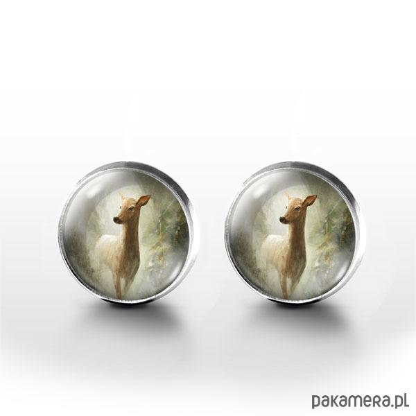 Grafika zamknięta w oryginalnych kolczykach, pod osłoną przeźroczystego półokrągłego szkiełka.