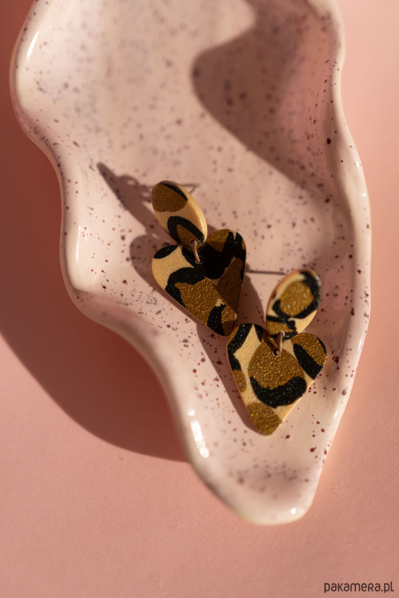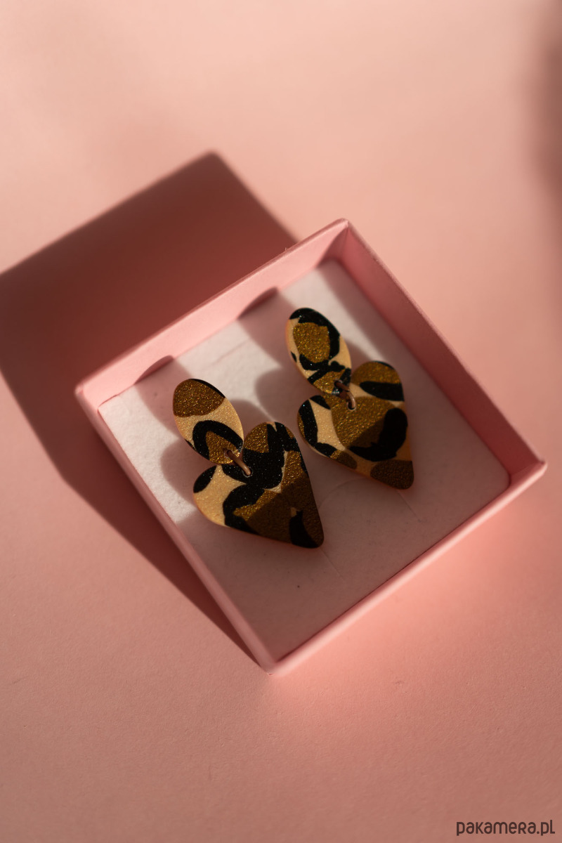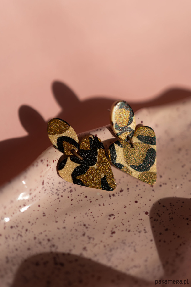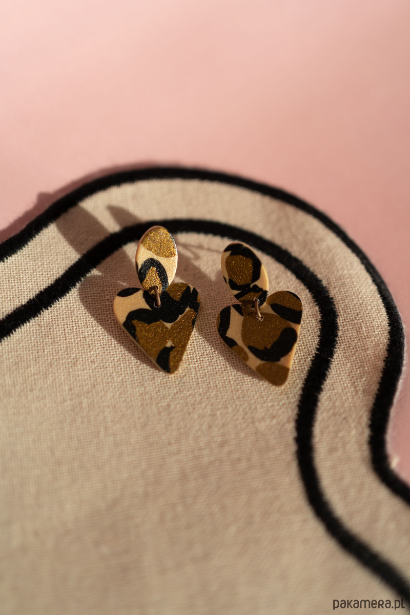 Wiszące kolczyki SERCA w panterkowy wzór. Każdy element jest wykonany, wycinany i szlifowany ręcznie z dbałością o każdy szczegół.Wzór ze zdjęcia jest wzorem poglądowym. Każda para różni się nieznacznie od siebie - magia rękodzieła :)