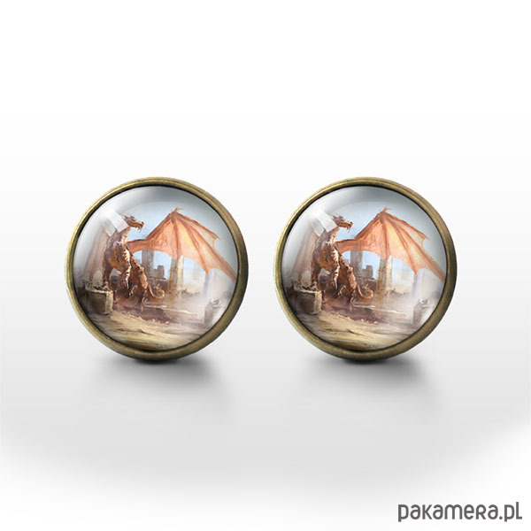 Kolczyki sztyfty - Smok - brąz