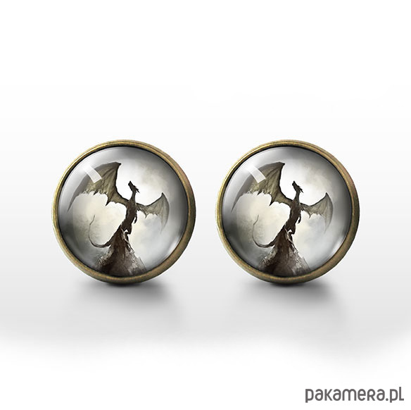 Grafika zamknięta w oryginalnych kolczykach, pod osłoną przeźroczystego półokrągłego szkiełka.
