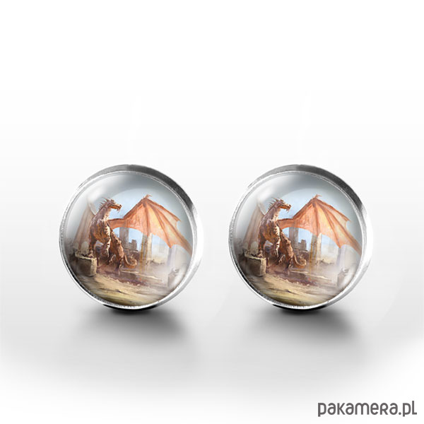 Kolczyki sztyfty - Smok - grafika