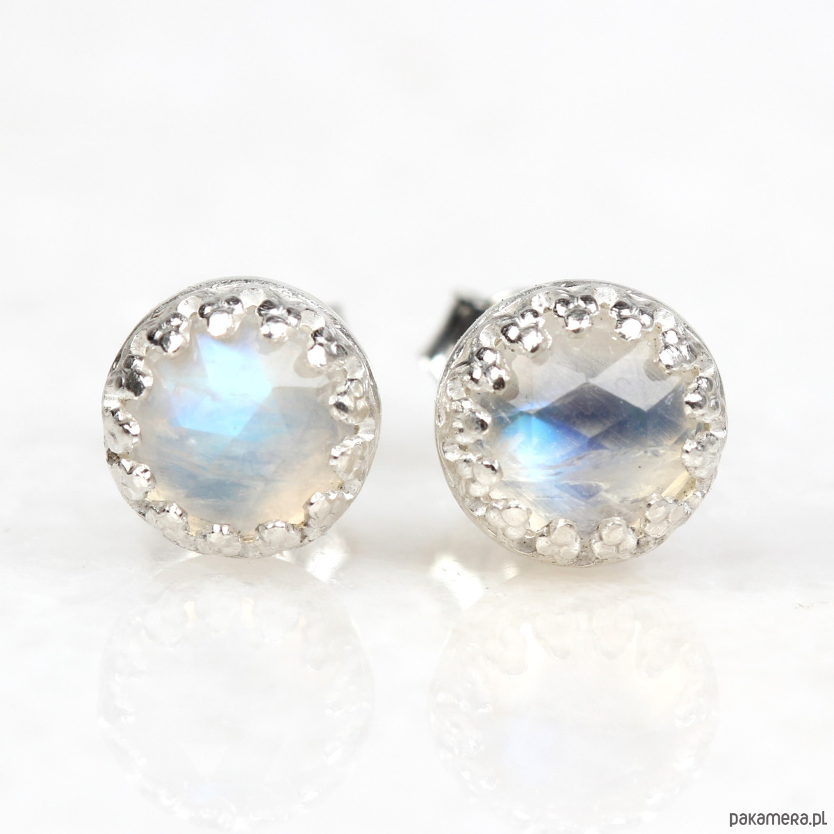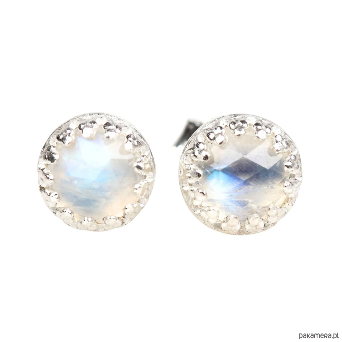 Kolczyki sztyfty srebrne Petite z kamieniem księżycowym