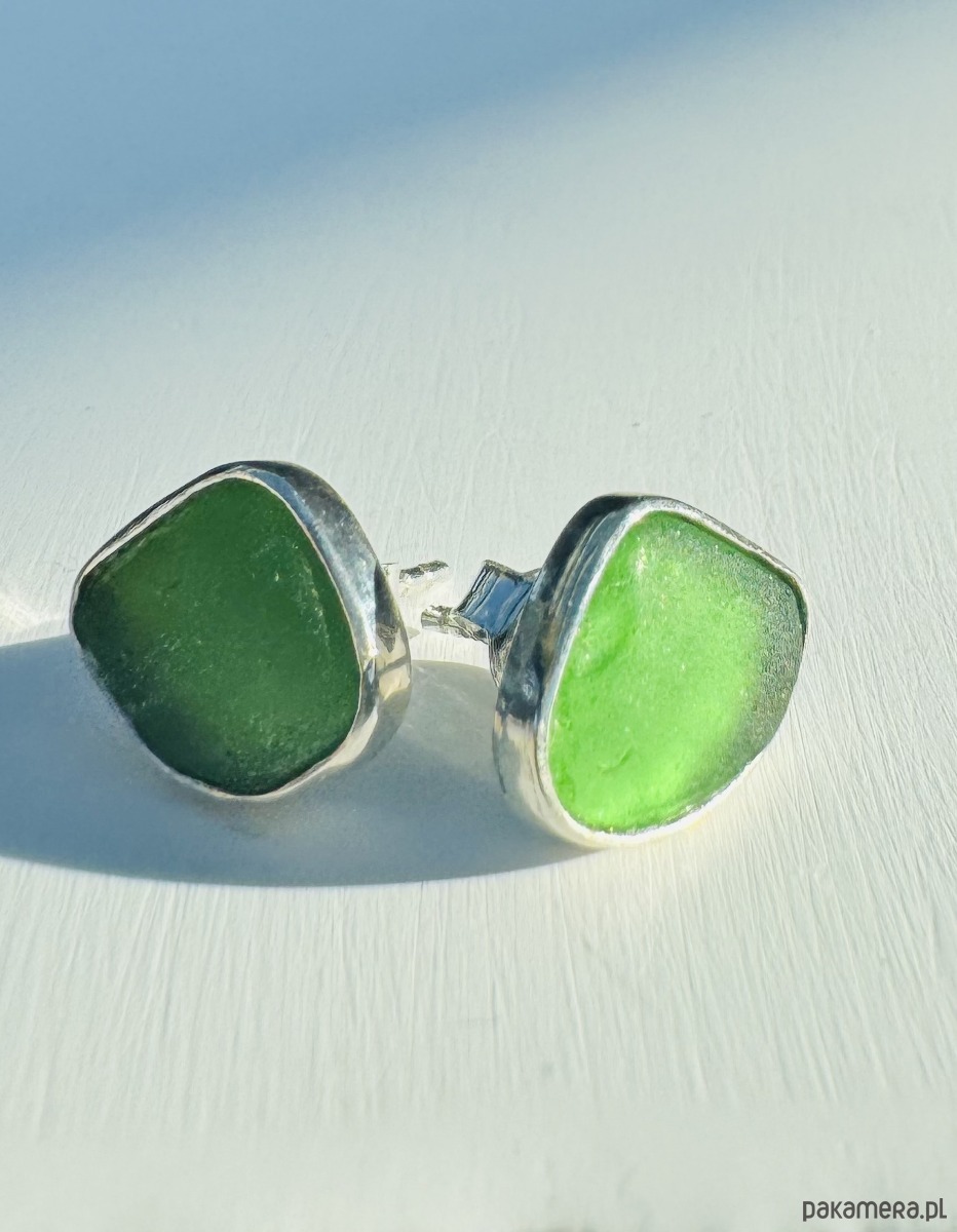 Kolczyki sztyfty srebrne ze szkłem morskim