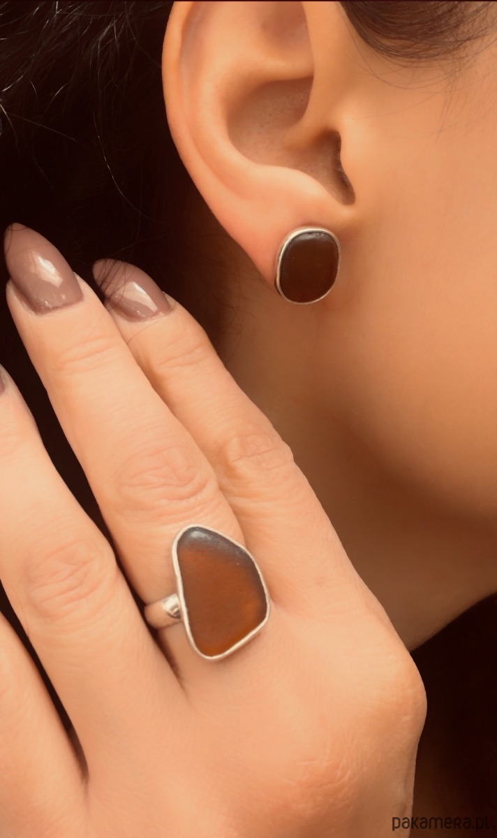 Delikatne kolczyki sztyfty wykonane ze srebra i naturalnego szkła morskiego, które przez lata kształtowane było przez wodę, piasek i czas. Każdy kawałek szkła posiada swoją unikalną formę i odcień, dzięki czemu kolczyki są niepowtarzalne — jak fragment historii odnaleziony na plaży.