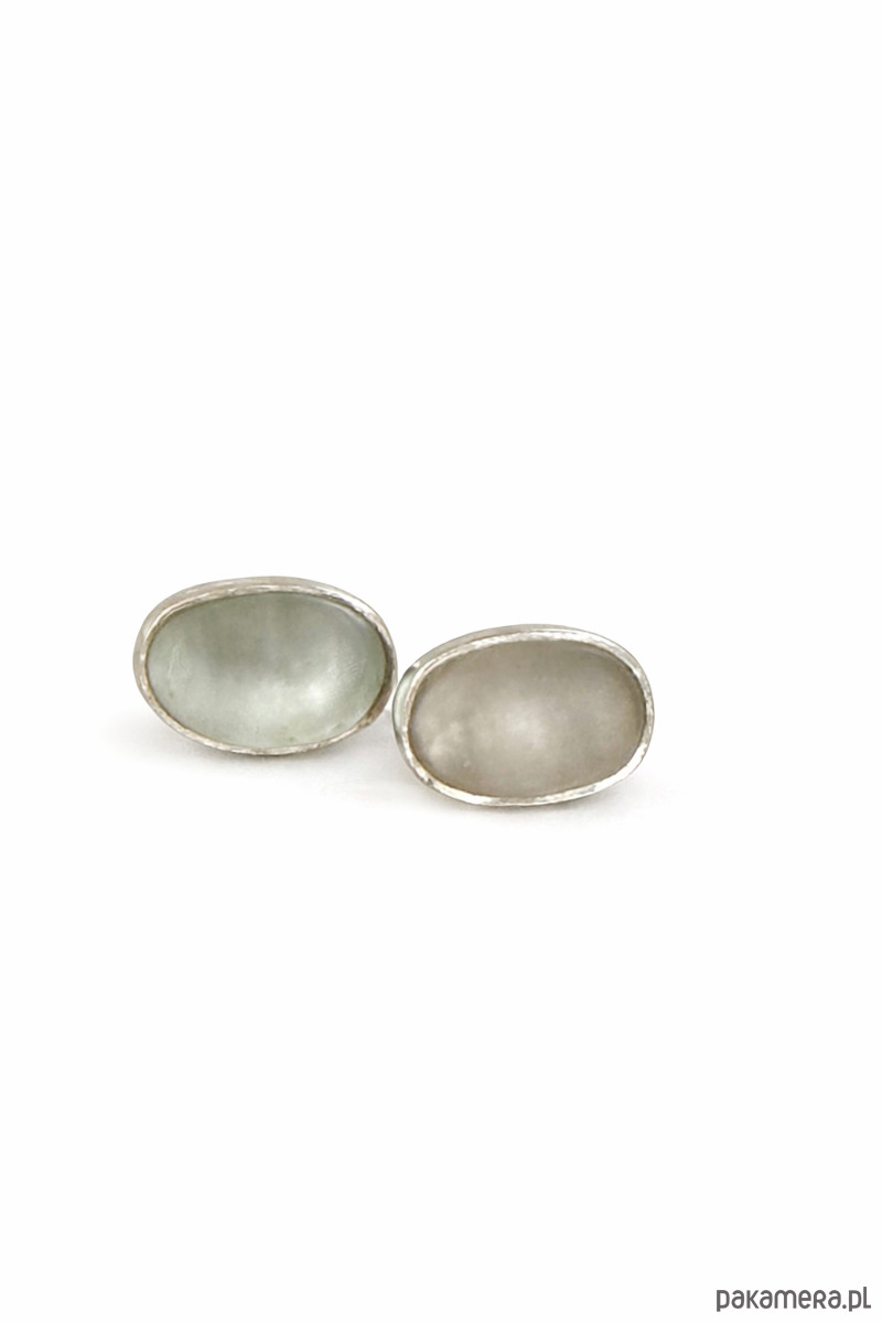 Srebrne kolczyki sztyfty z szkłem morskim