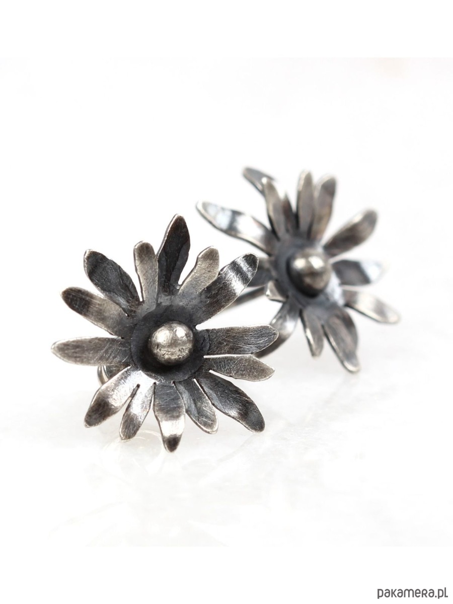 Ręcznie wykonane kolczyki kwiaty ze srebra wykończone oksydą