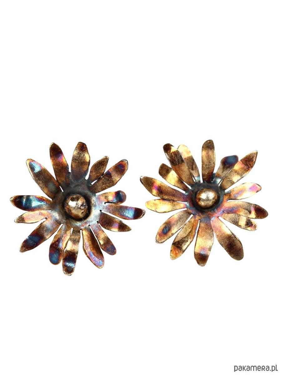 Ręcznie wykonane kolczyki kwiaty ze srebra wykończone oksydą tęczową