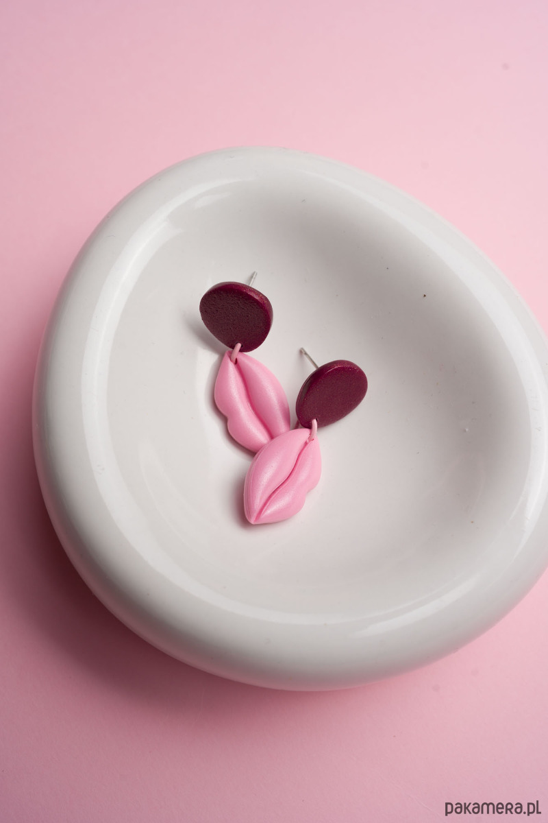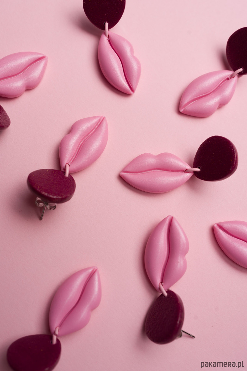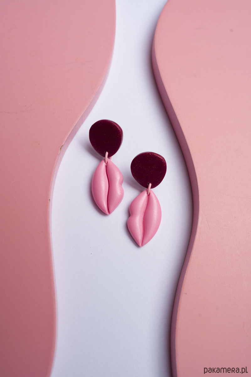 Wiszące kolczyki USTA MINI WERSJA. Każdy element jest wykonany, wycinany i szlifowany ręcznie z dbałością o każdy szczegół.