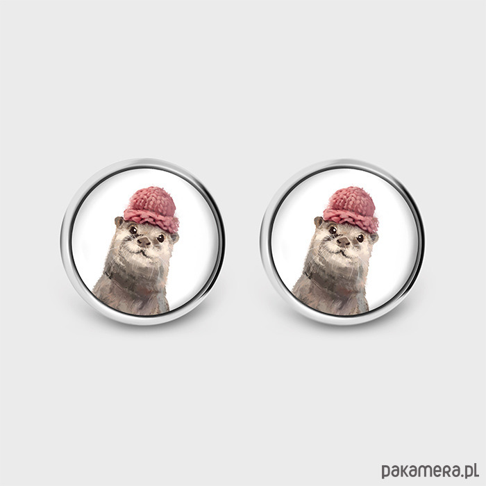 Grafika zamknięta w oryginalnych kolczykach, pod osłoną przeźroczystego półokrągłego szkiełka.