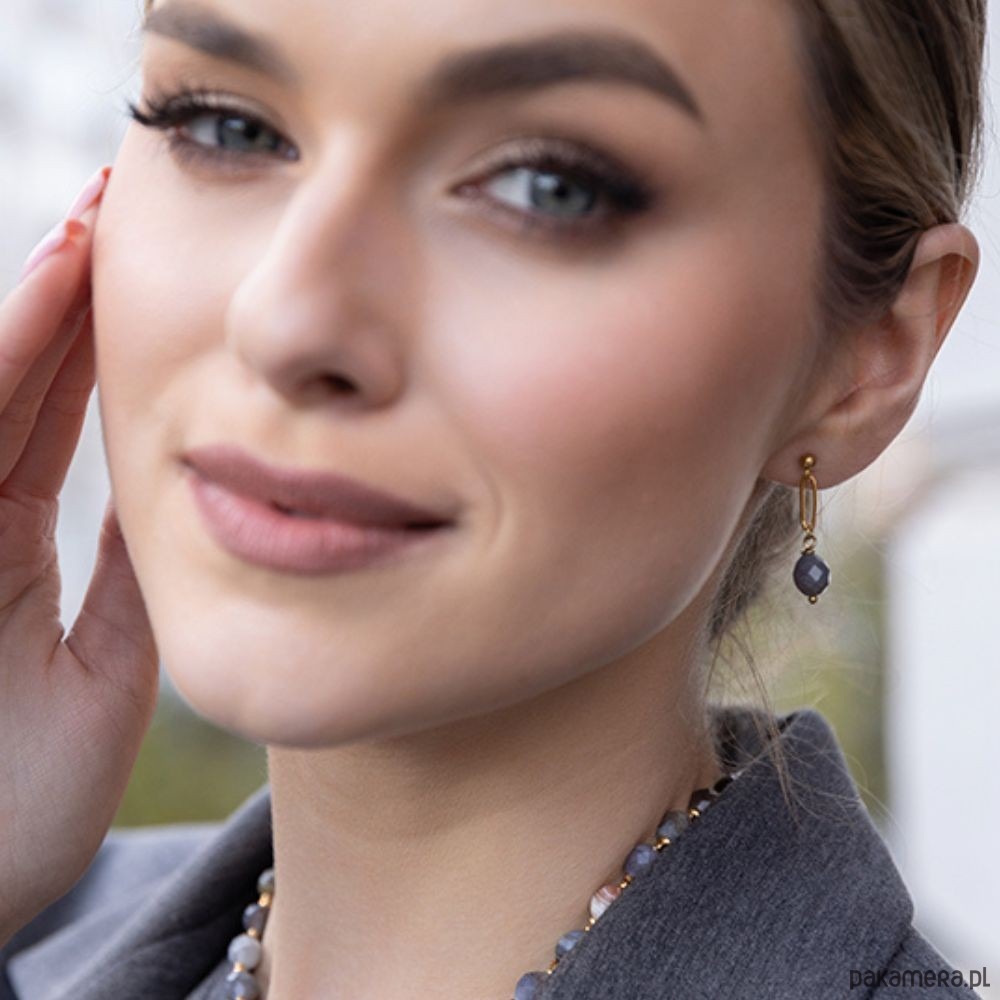 Kolczyki wykonane są z wysokiej jakości pozłacanej stali szlachetnej, która jest materiałem antyalergicznym. Pozłocenie nie zmienia koloru podczas użytkowania. Wymiary:Kamień: Agat BotswanaWielkość kamieni: 6x8mmDługość kolczyków: 3 cm Materiał: antyalergiczna stal szlachetna