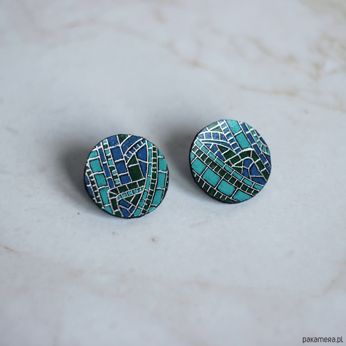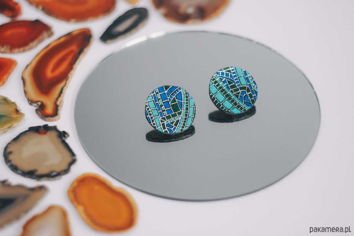 Wzór mozaiki jest przeze mnie odręcznie wykonany, a to sprawia, że każdy kolczyk delikatnie się różni, jest jedyny w swoim rodzaju.