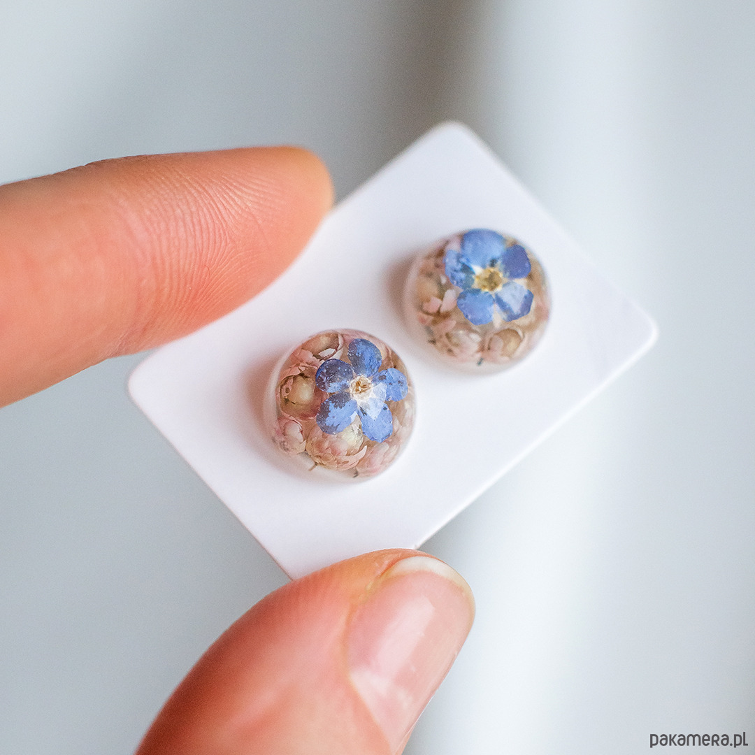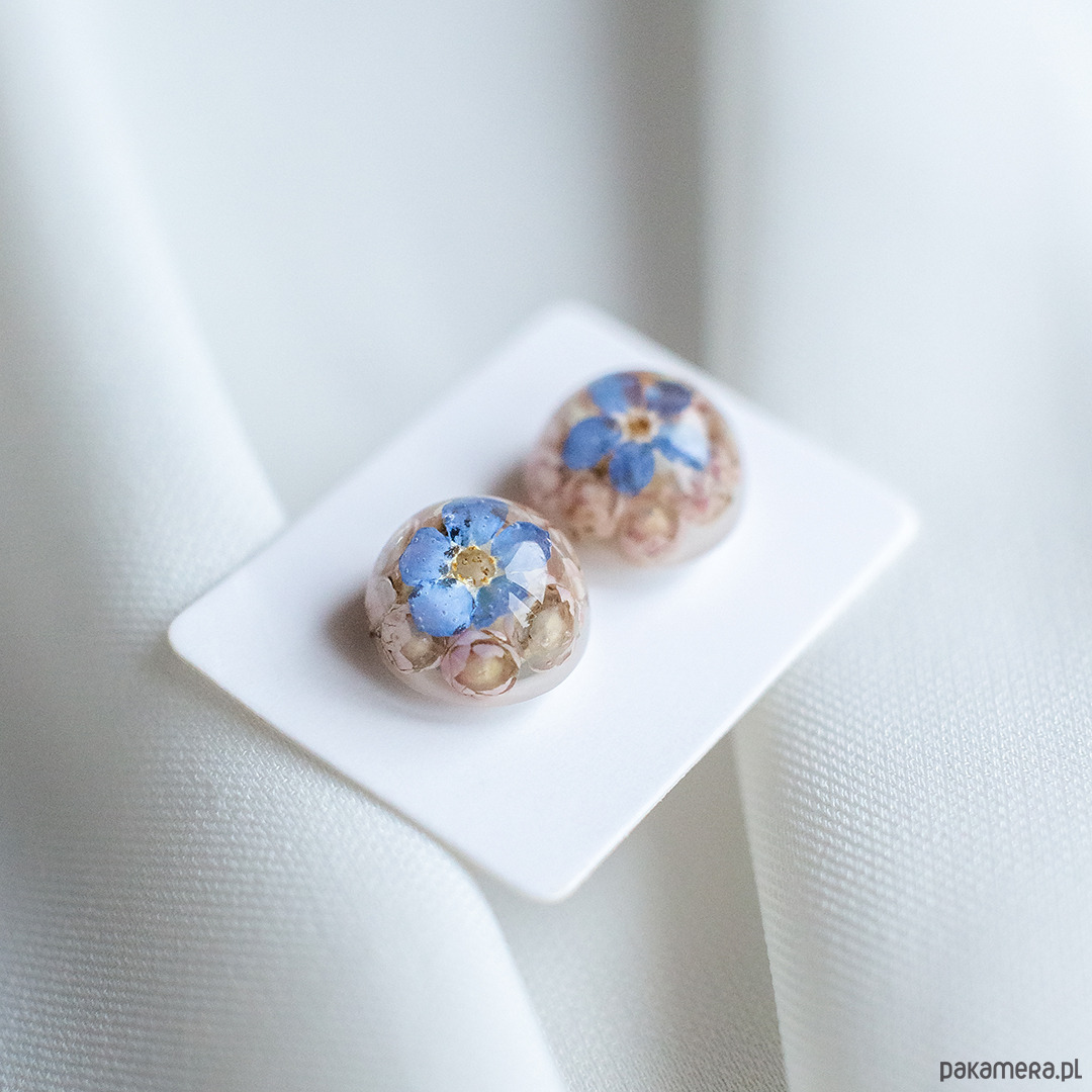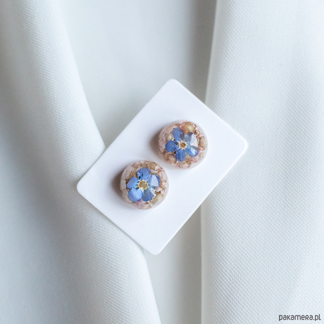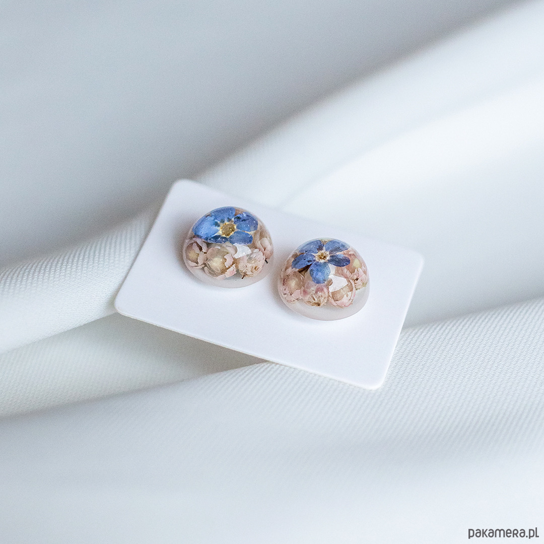 Kolczyki wykonany jest z żywicy epoksydowej z wykorzystaniem suszonych kwiatów. Metalowe elementy to stal nierdzewna szlachetna chirurgiczna.