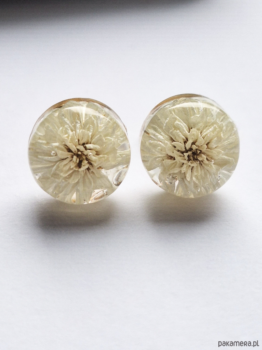 Kolczyki sztyfty z żywicy z kwiatem krwawnika