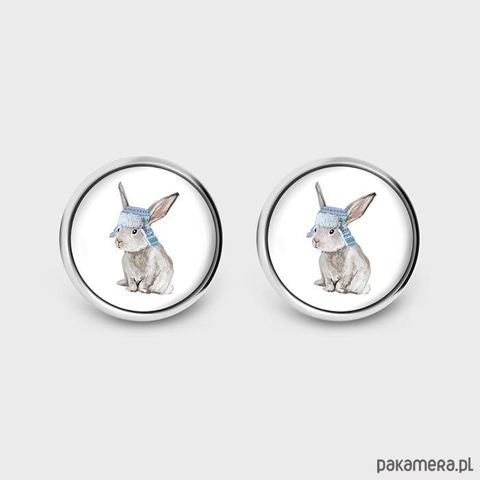 Grafika zamknięta w oryginalnych kolczykach, pod osłoną przeźroczystego półokrągłego szkiełka.