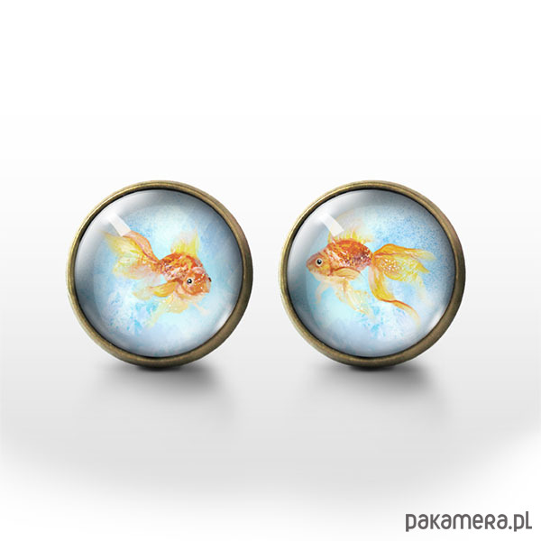 Grafika zamknięta w oryginalnych kolczykach, pod osłoną przeźroczystego półokrągłego szkiełka.