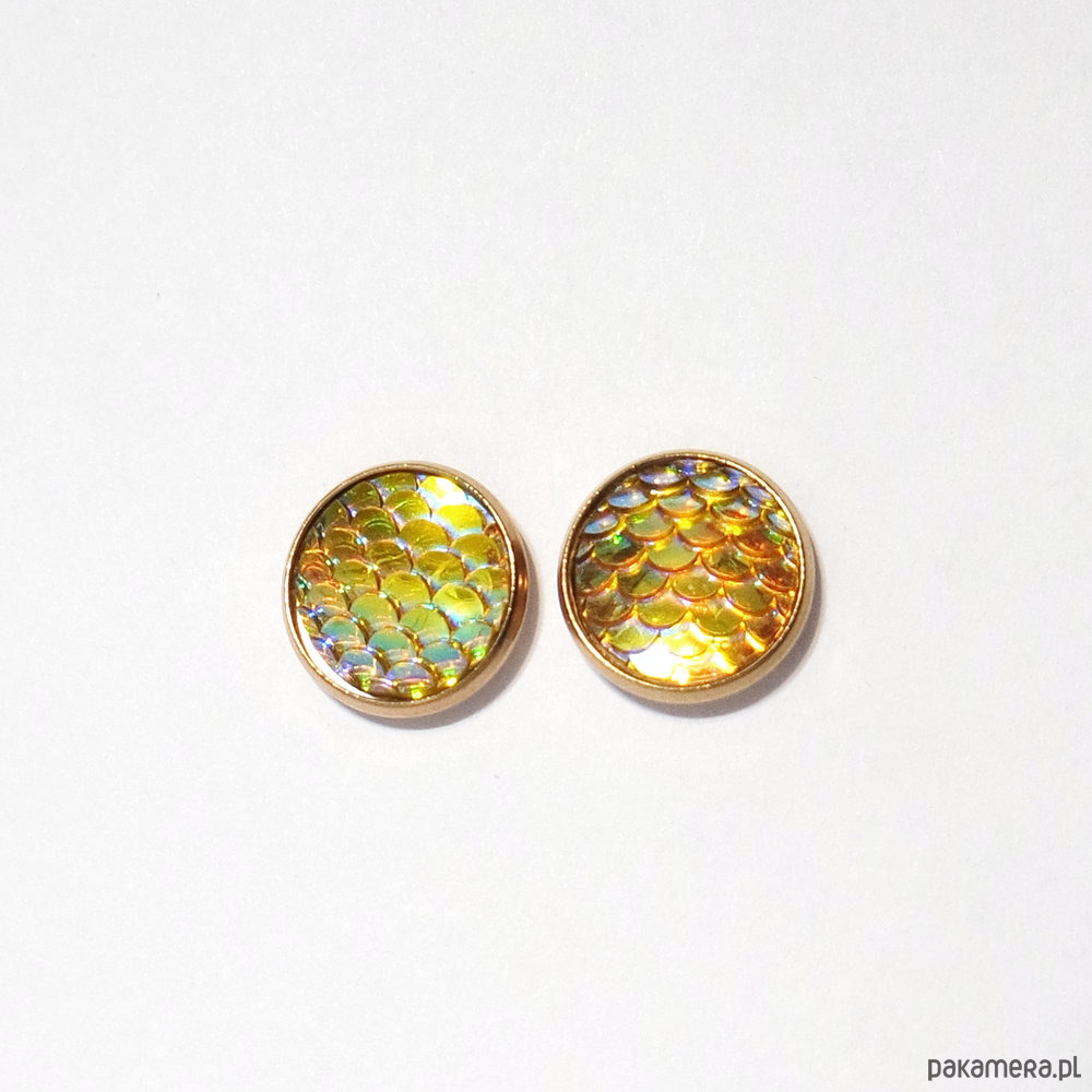 Niezwykłe, subtelne, małe kolczyki sztyfty z kaboszonem z żywicy imitującym łuski.