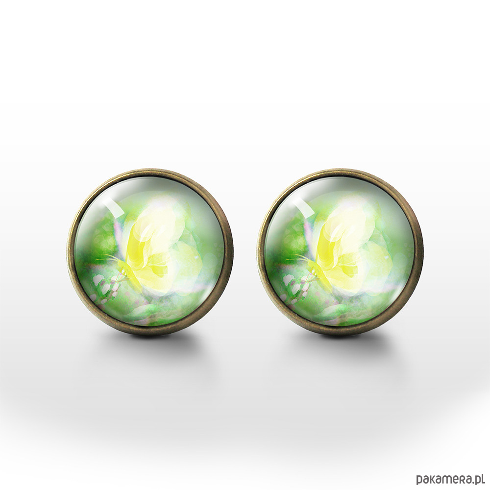 Grafika zamknięta w oryginalnych kolczykach, pod osłoną przeźroczystego półokrągłego szkiełka.