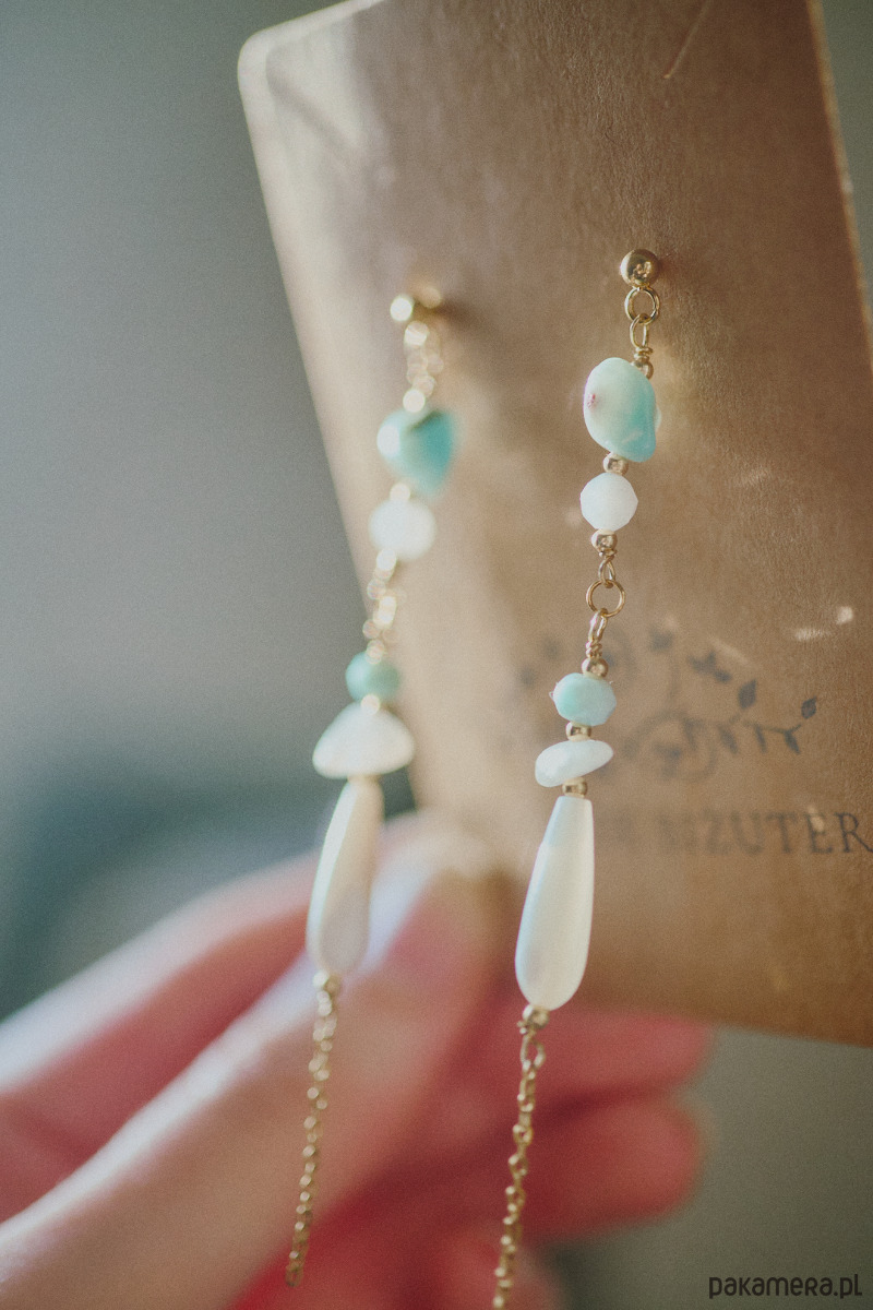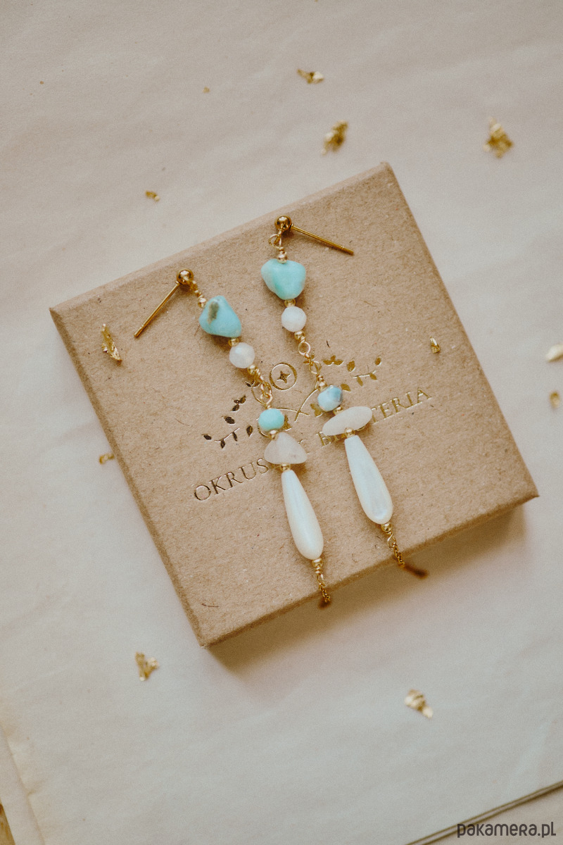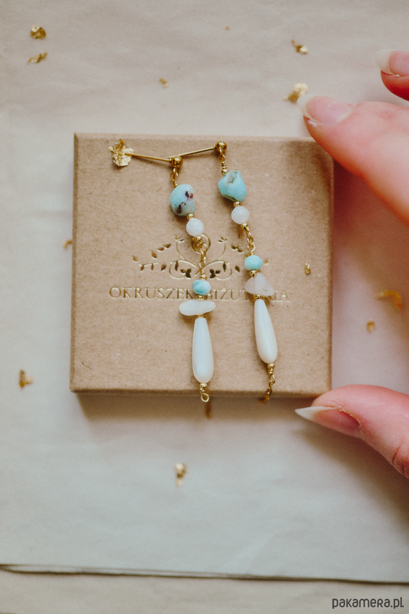 Kolczyki Talayla, kamień księżycowy, larimar