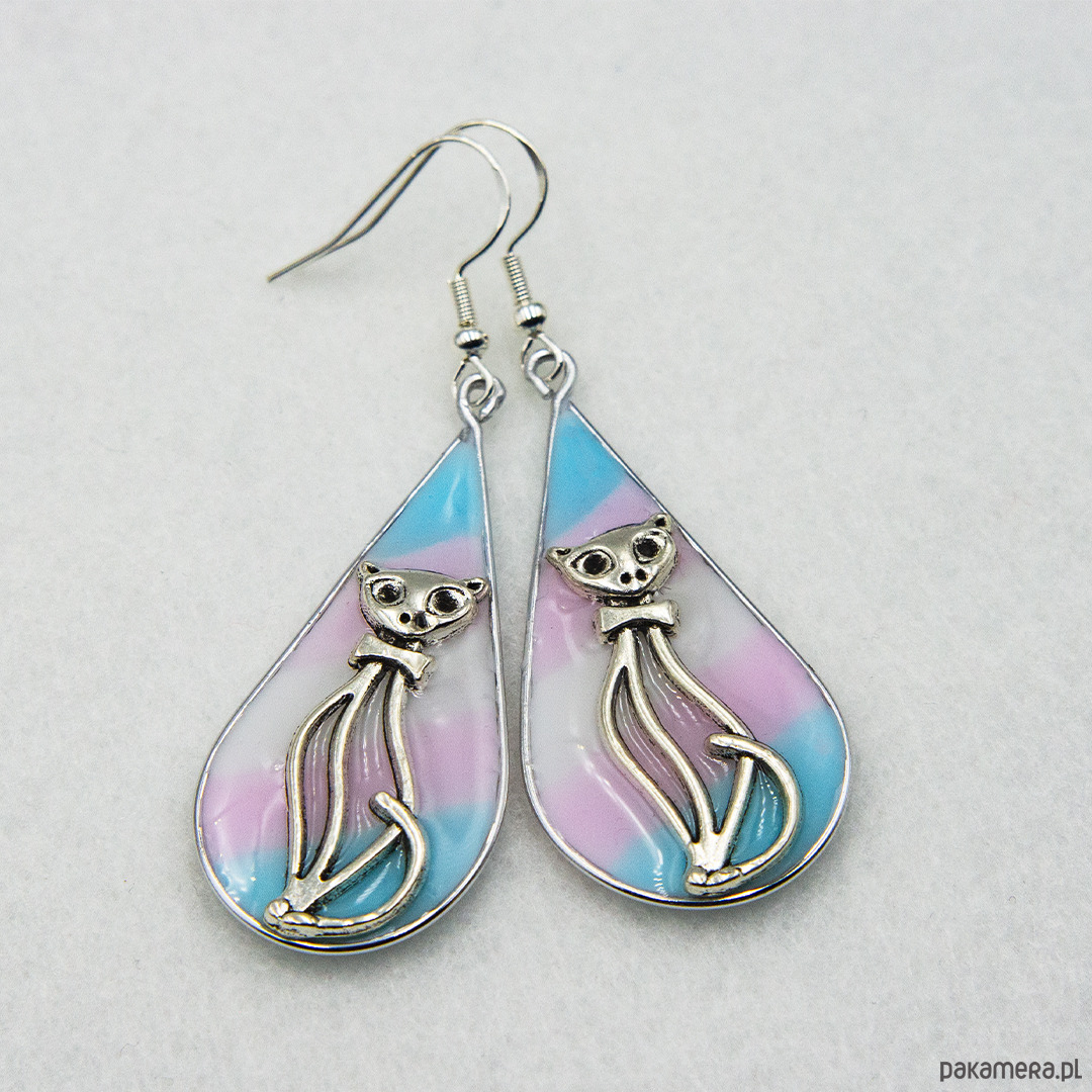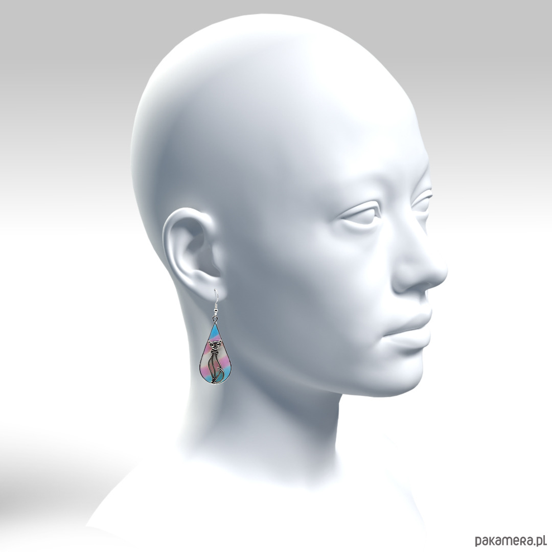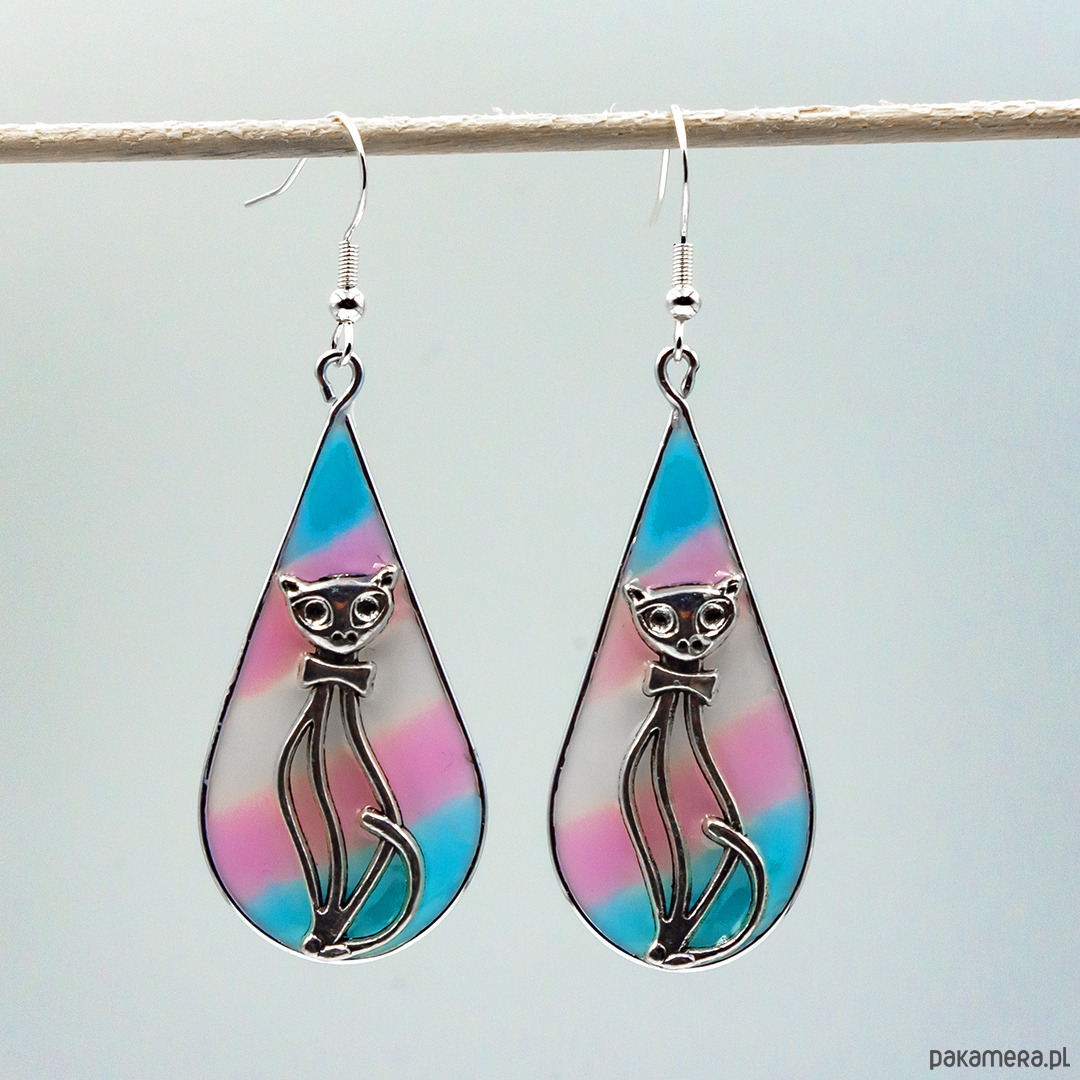 Kolczyki tęczowe trans pride z żywicy z kotem 002