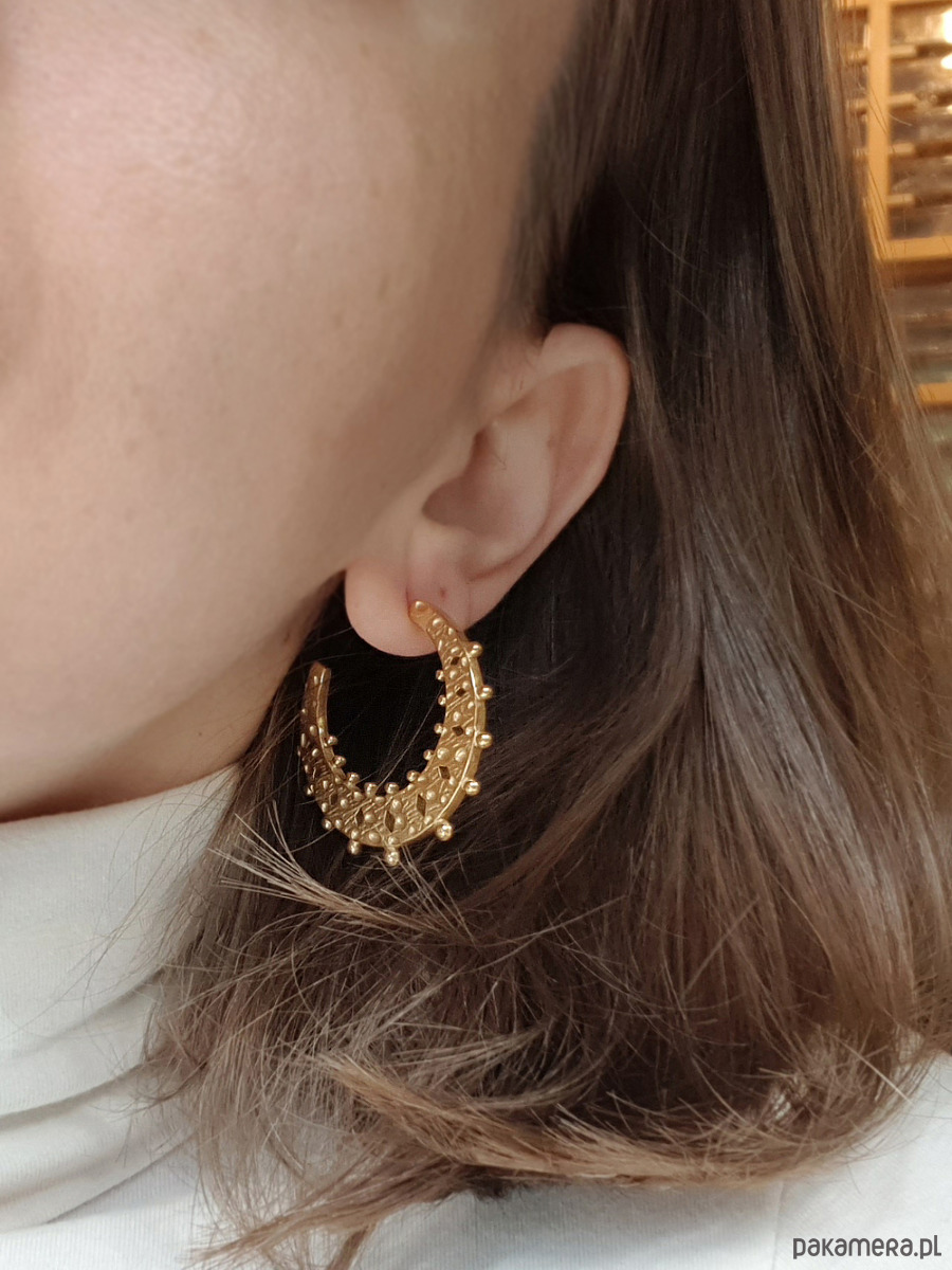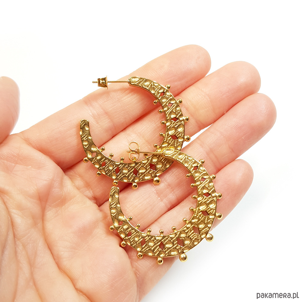 Kolczyki wykonane ze stali chirurgicznej. Wielkość kolczyków - 3,5 cm.