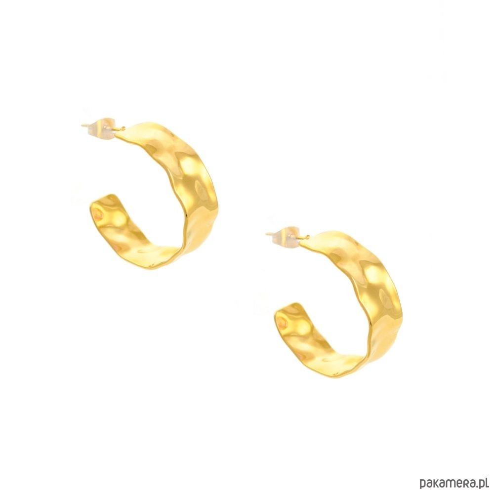 Kolczyki tłoczone półkoła to połączenie elegancji i naturalnego charakteru w jednej formie. Ich wyjątkowa, nieregularna faktura odbija światło w sposób przypominający powierzchnię wody lub delikatnie pognieciony metal, co nadaje im artystycznego, organicznego uroku.