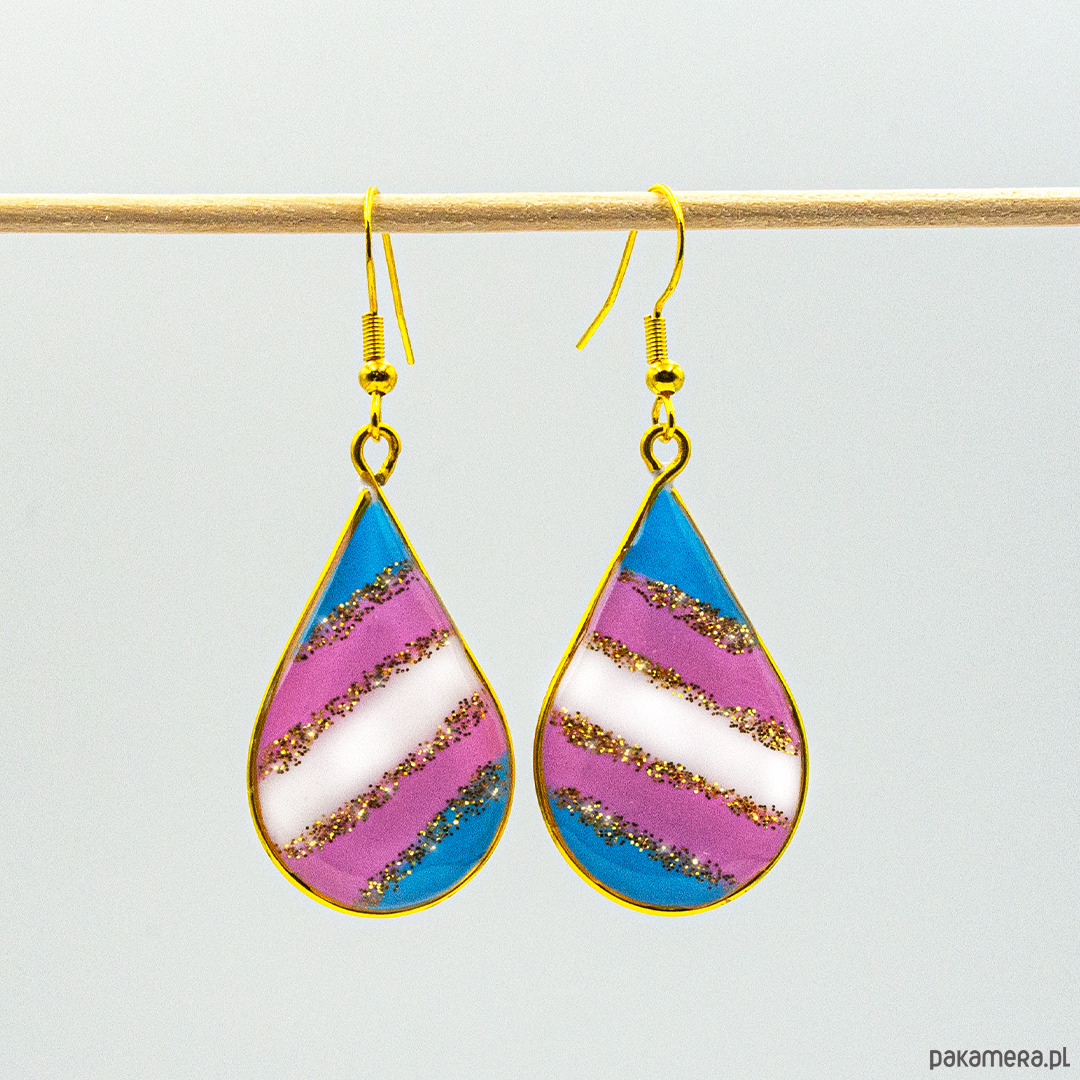 Unikalne kolczyki pride z żywicy, zaprojektowane i ręcznie wykonane przeze mnie. W subtelny i elegancki sposób podkreślają dumę z tożsamości osoby je noszącej. Długość ok. 5 cm + zawieszka