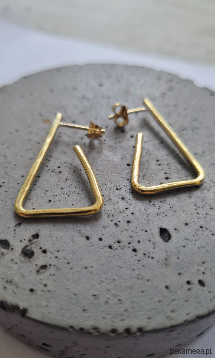 Kolczyki sztyfty wykonane ręcznie z mosiądzu, złocone = pokryte cienką warstwą złota,
