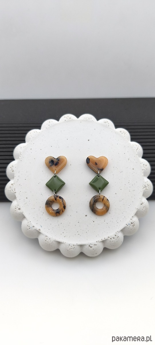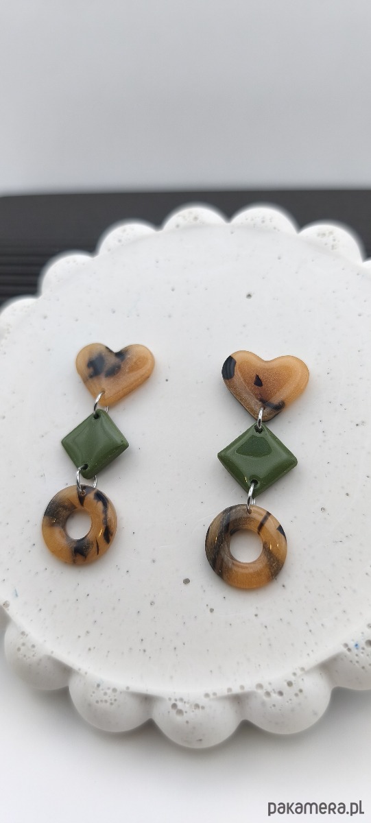 Kolczyki TRIO mają bardzo nowoczesny i graficzny charakter z dodatkiem uroczego akcentu - serca. Szylkretowy design z dodatkiem kolorystycznym.