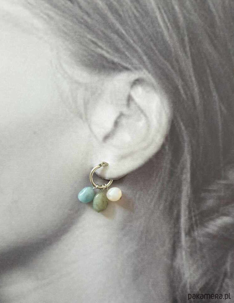 Kolczyki TRIO, idealne na wieczorne wyjście ale też na co dzień. Wykonane ze stali szlachetnej (hipoalergicznej) z kamieniami naturalnymi: jadeit wiśniowy, akwamaryn, labradoryt . Można je nosić na wiele sposobów bo kamyczki są zdejmowane: