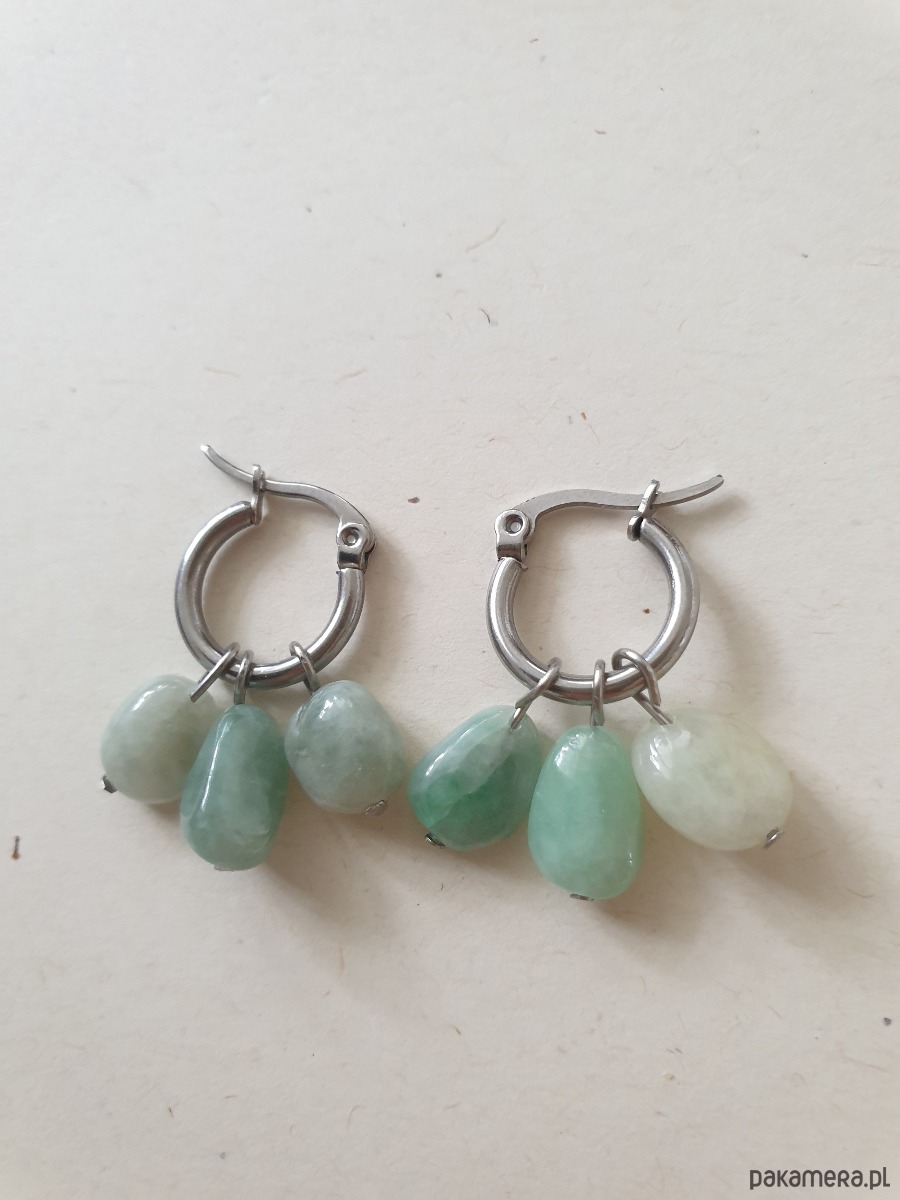 Kolczyki TRIO, idealne na wieczorne wyjście ale też na co dzień. Wykonane ze stali szlachetnej (hipoalergicznej) z kamieniami naturalnymi: naturalny jadeit zielony. Można je nosić na wiele sposobów bo kamyczki są zdejmowane: