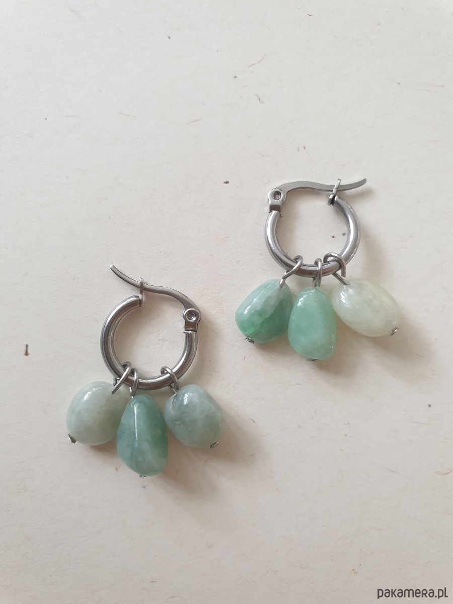 Kolczyki TRIO, idealne na wieczorne wyjście ale też na co dzień. Wykonane ze stali szlachetnej (hipoalergicznej) z kamieniami naturalnymi: naturalny jadeit zielony. Można je nosić na wiele sposobów bo kamyczki są zdejmowane: