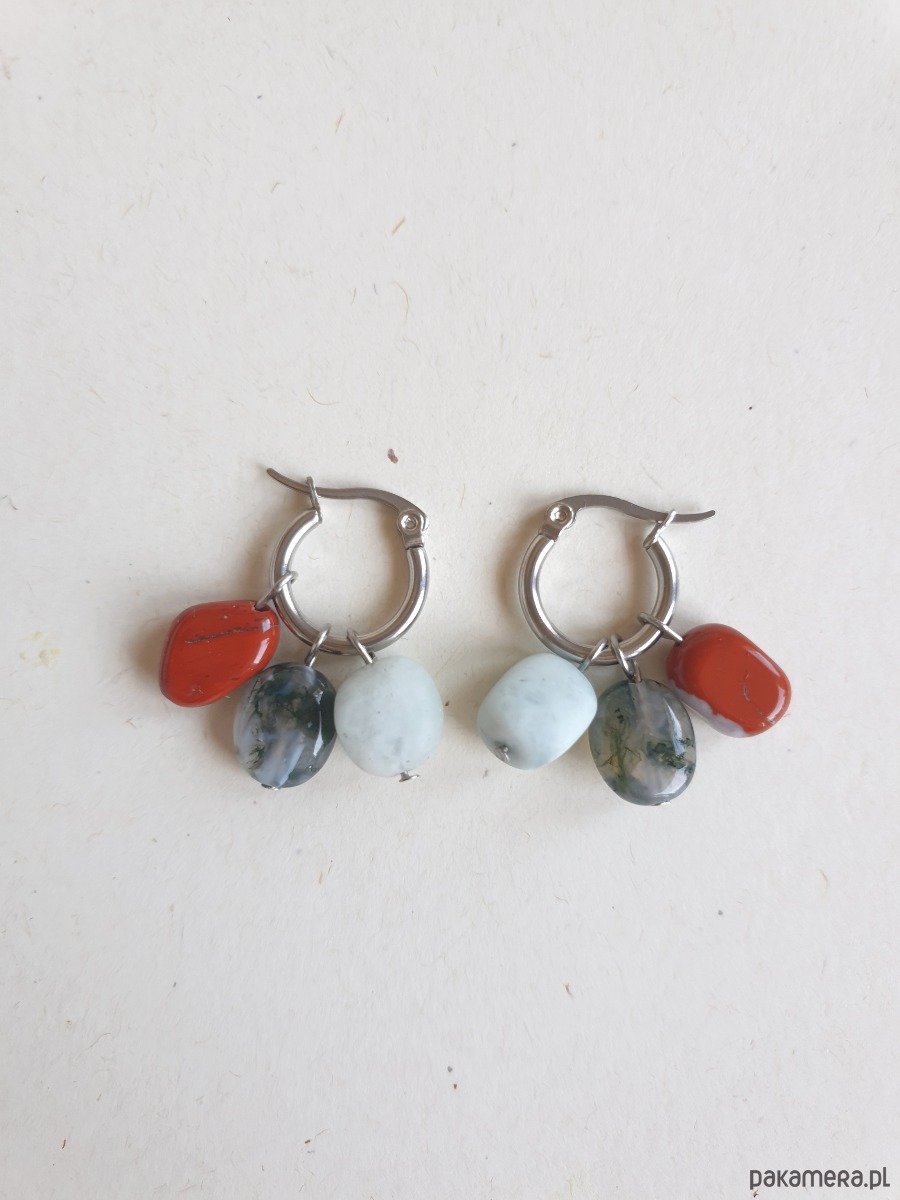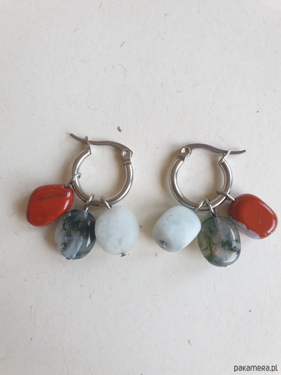 Kolczyki TRIO jaspis czerwony, agat mszysty, akwamaryn