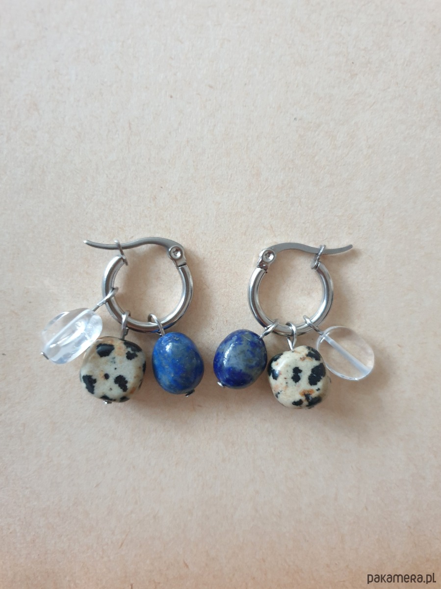 Kolczyki TRIO kryształ górski, lapis lazuli, jaspis dalmatyński