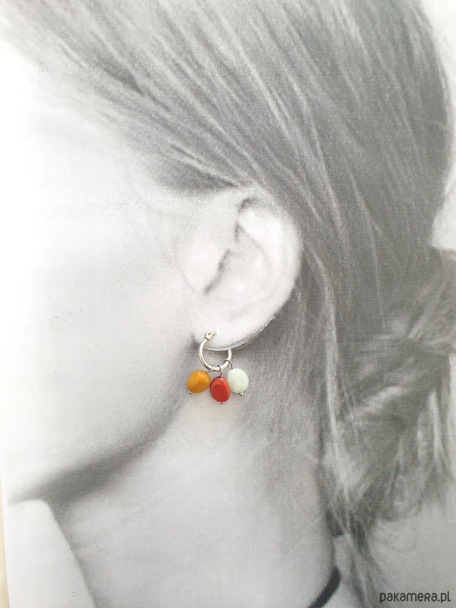Kolczyki DROPSY TRIO, idealne na wieczorne wyjście ale też na co dzień. Wykonane ze stali szlachetnej (hipoalergicznej) z kamieniami naturalnymi: zielony jadeit, jaspis czerwony, mokait. Można je nosić na wiele sposobów bo kamyczki są zdejmowane: