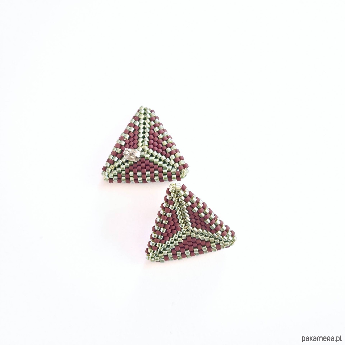 Tytuł: Kolczyki Trójkątne Sztyfty "Oliwkowe Espresso"