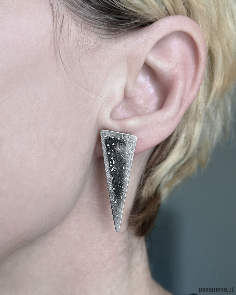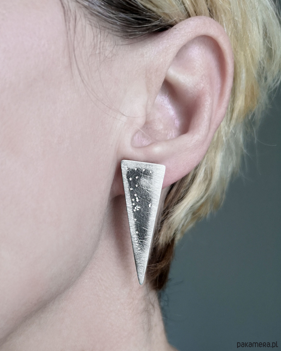 Unikatowe Kolczyki Trójkąty wykonane ze srebra próby 925.