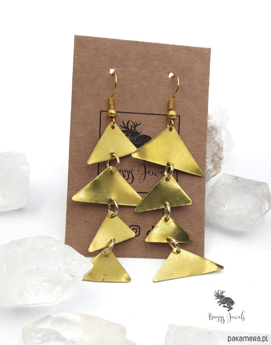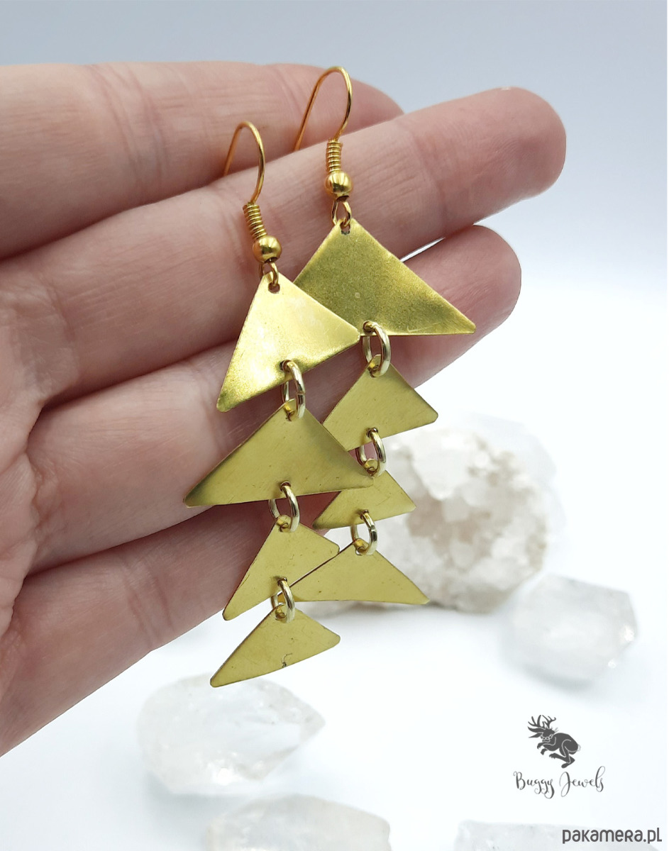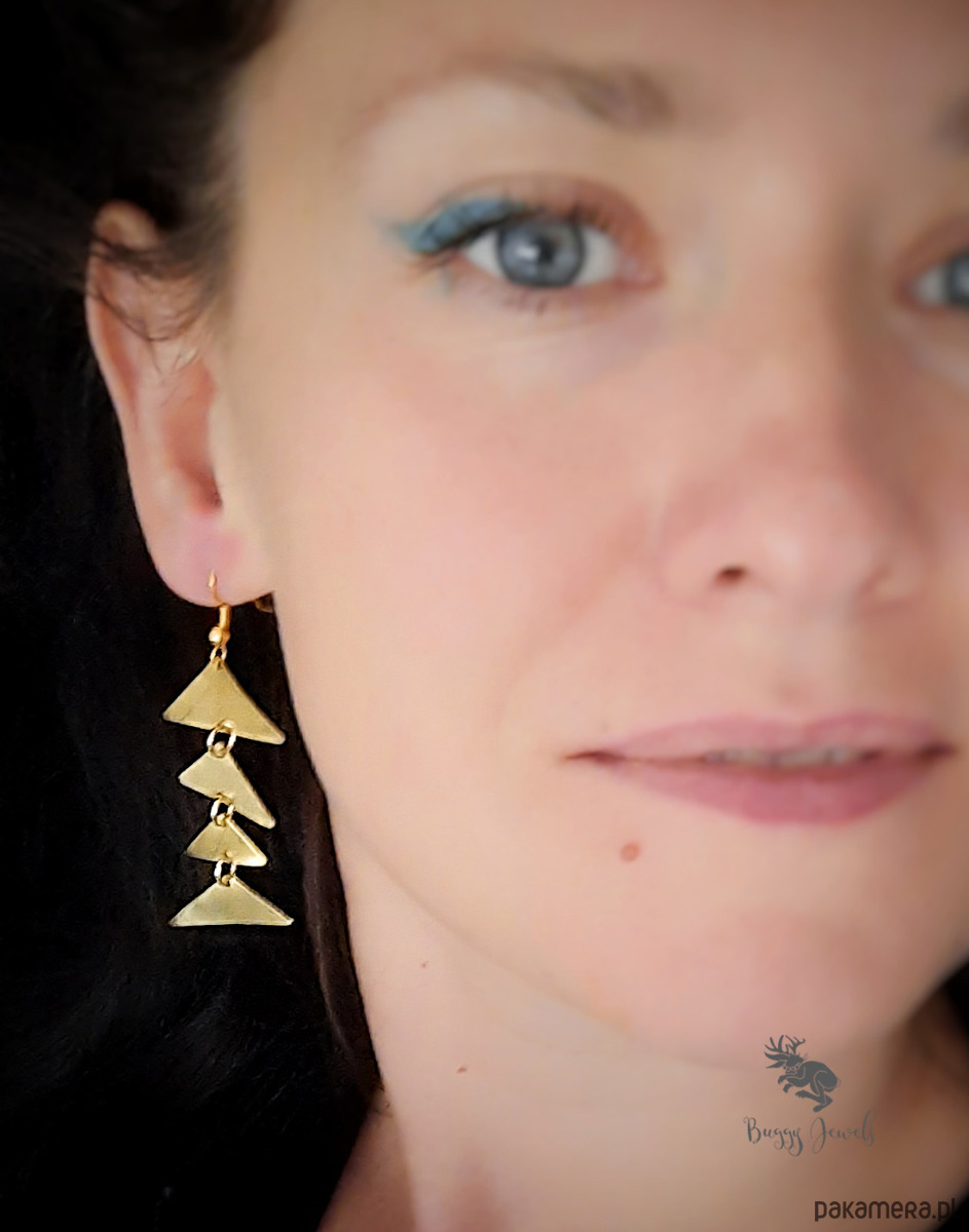 Efektowne, długie kolczyki wykonane z mosiądzu.
