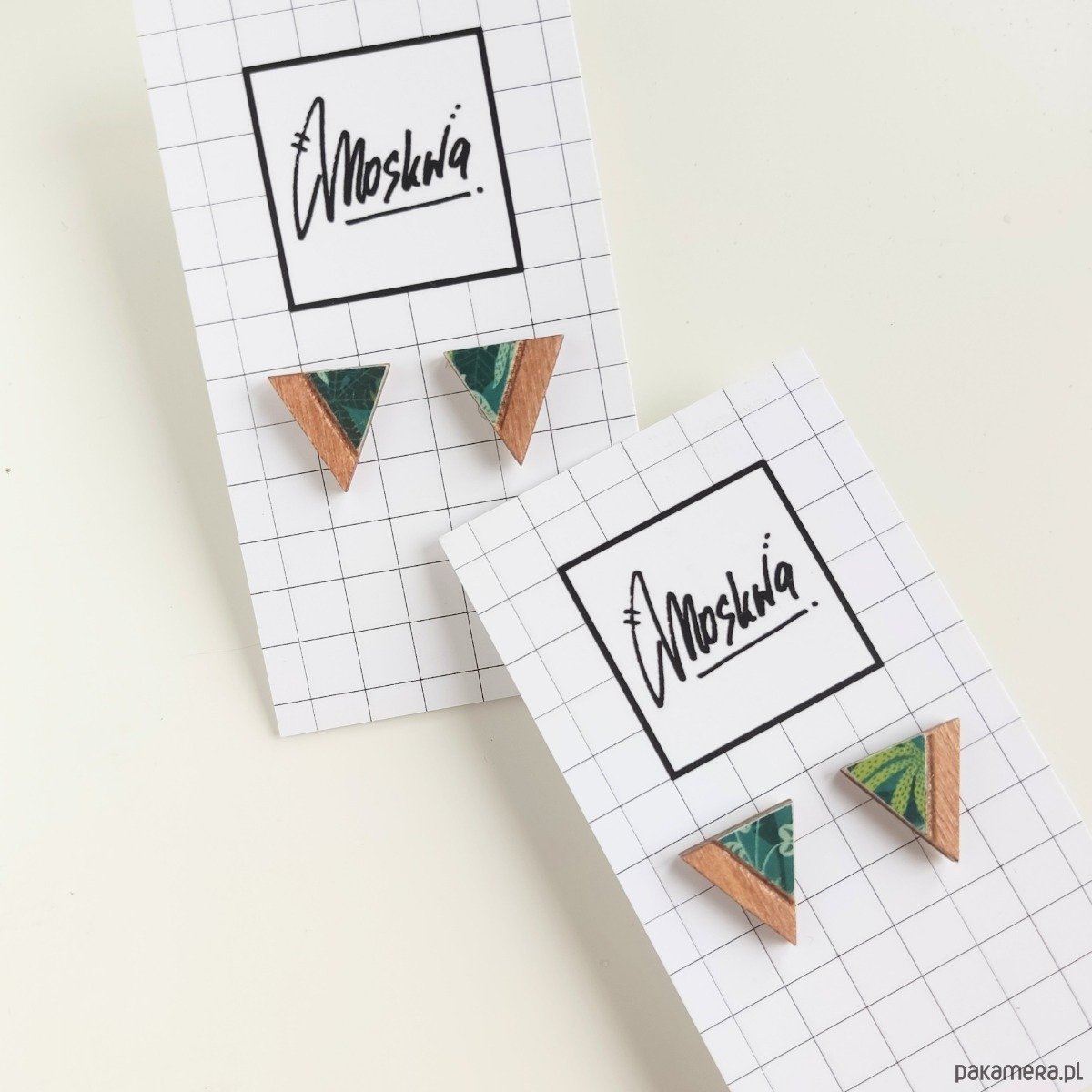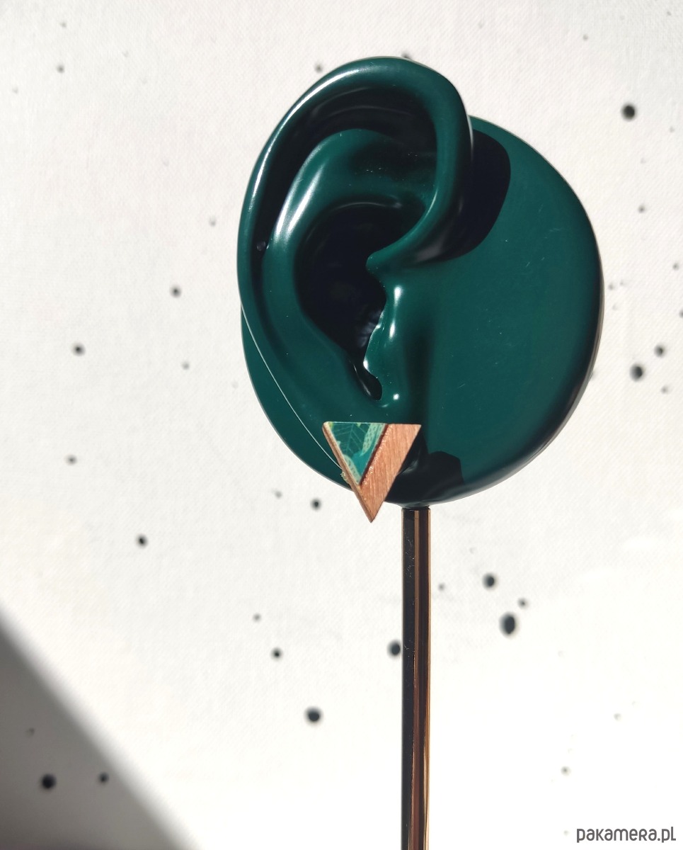 Kolczyki trójkąty zielono brązowe w liście