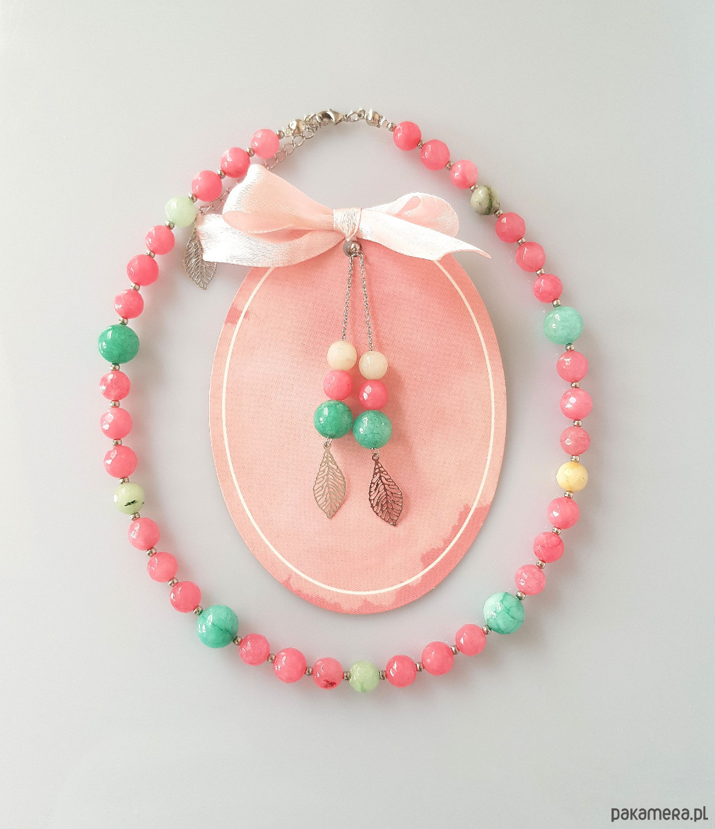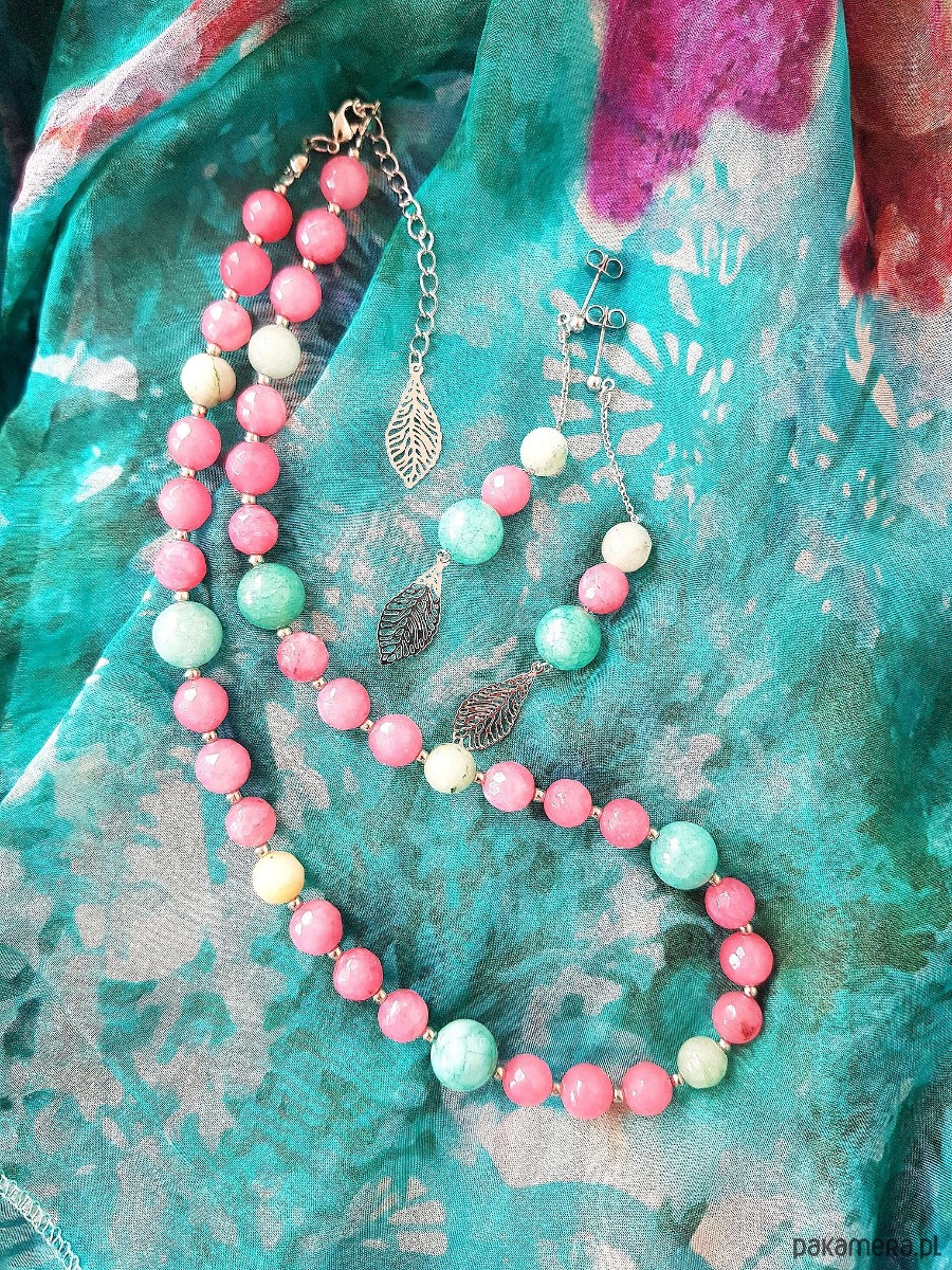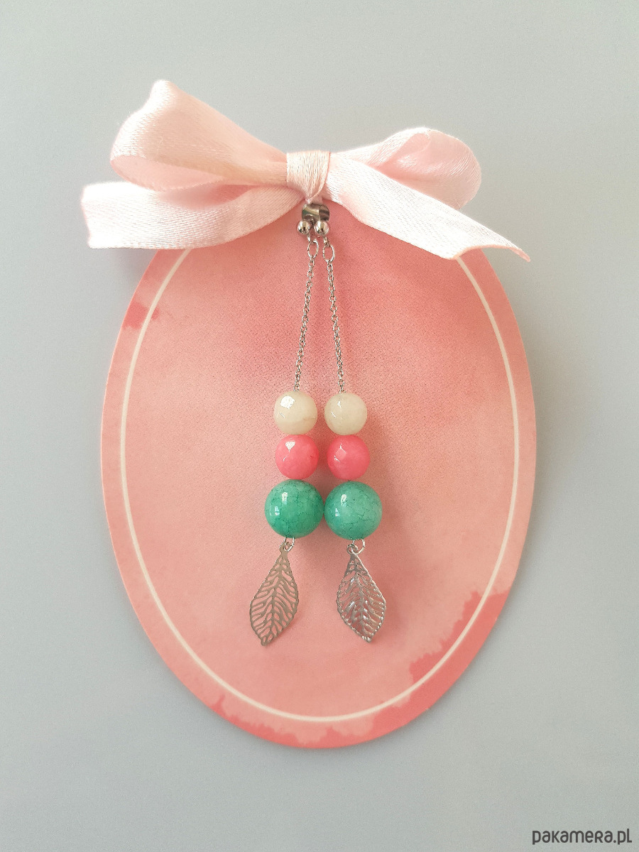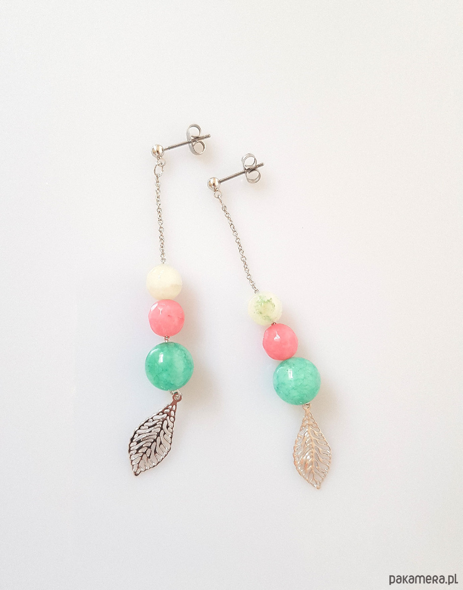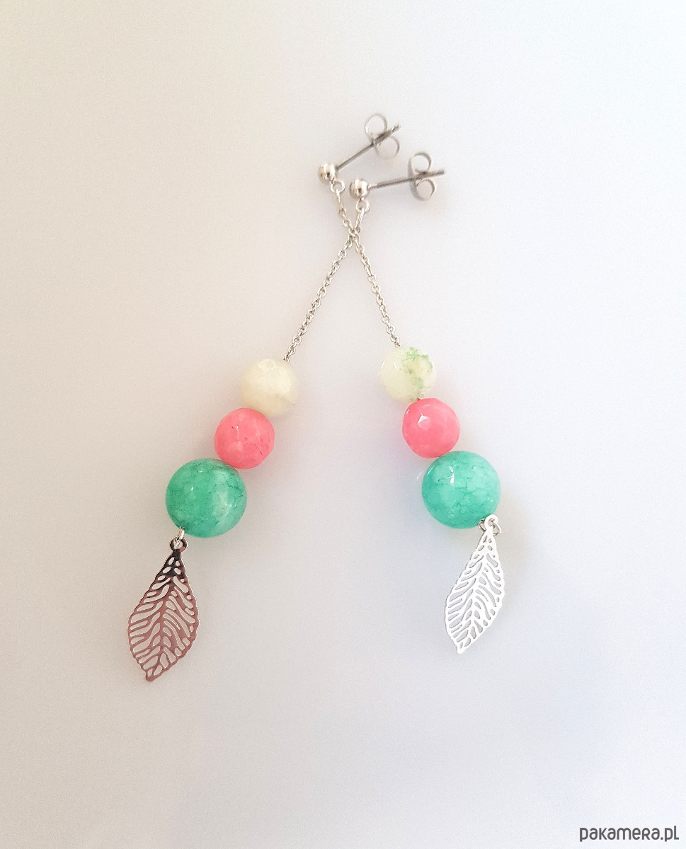 Eleganckie, długie, ruchliwe kolczyki z kolorowymi jadeitami.