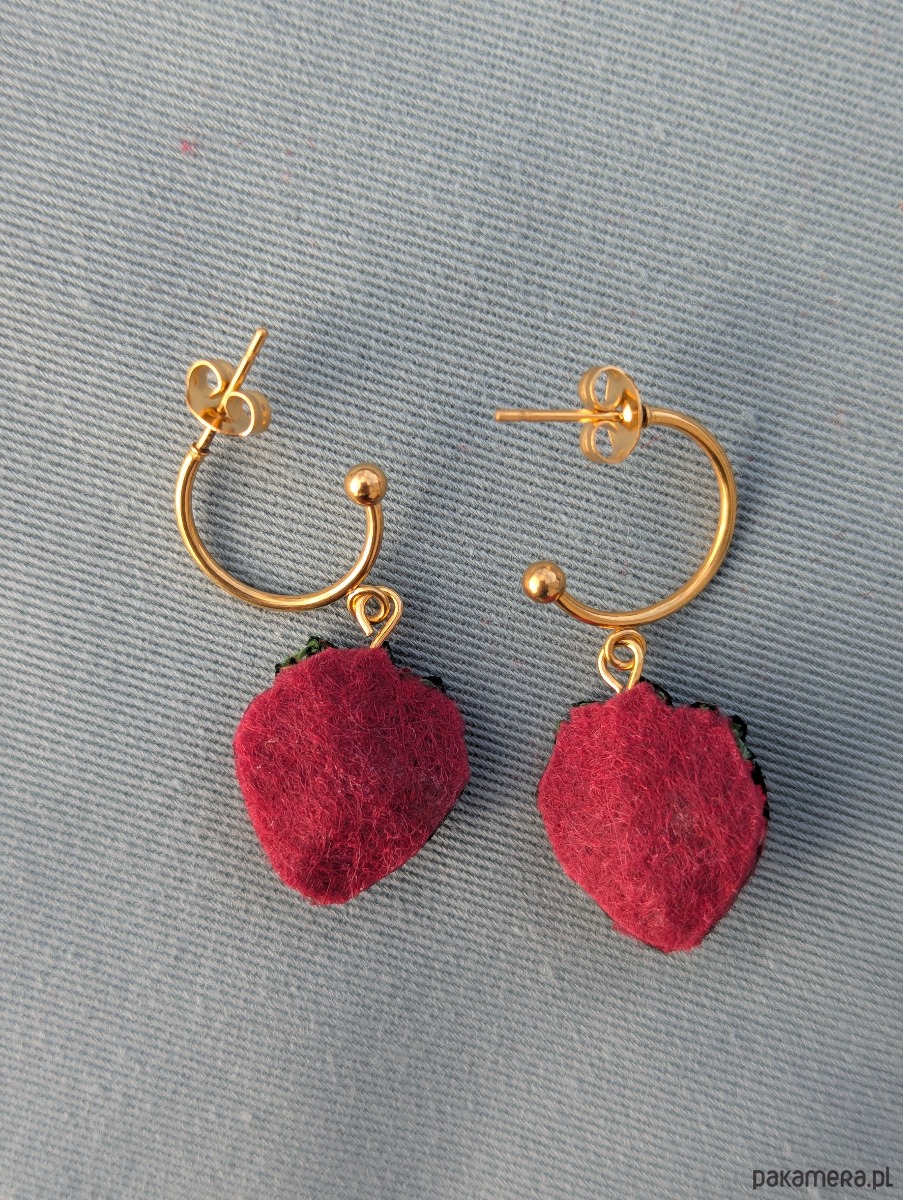 Truskawki umieszczone są na biglach/sztyftach antyalergicznych ze stali chirurgicznej w kolorze złotym. Do kolczyków dodaję sztyfty typu motylki, również w kolorze złotym.