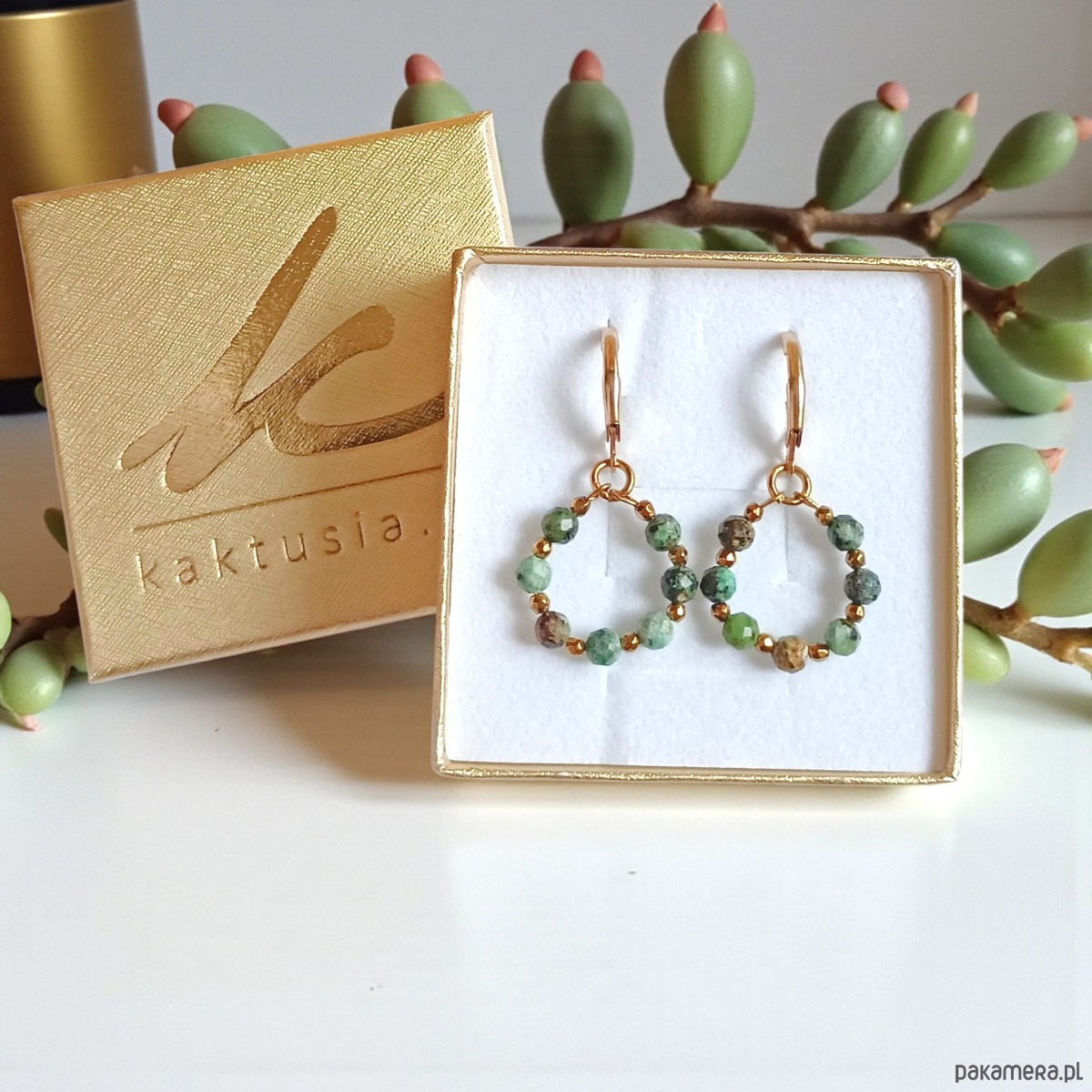 UROCZY PREZENT W ELEGANCKIM, ZŁOTYM PUDEŁKU JUBILERSKIM (logo marki KAKTUSIA)