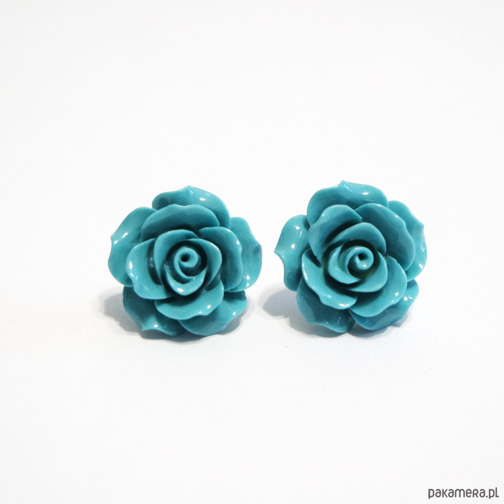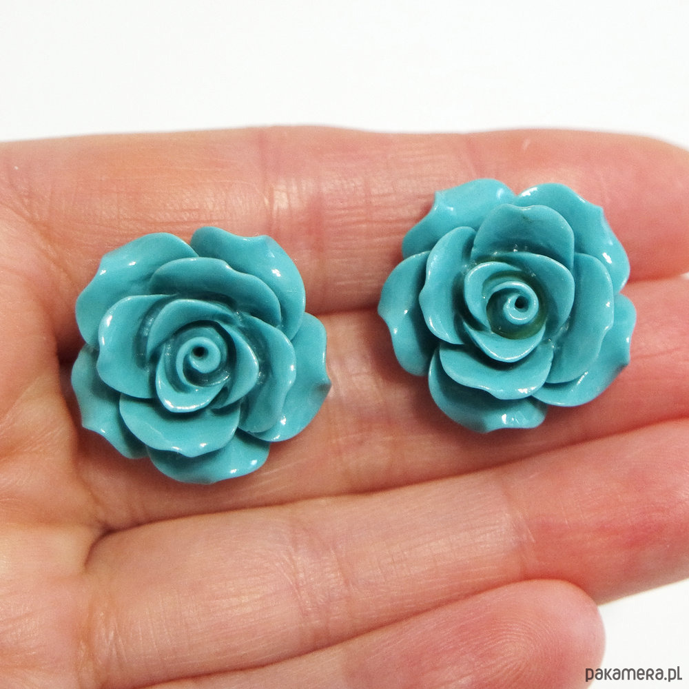 Kolczyki - Turkusowa róża - koral, duże