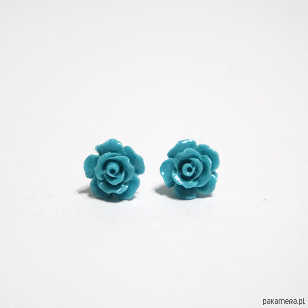 Kolczyki - Turkusowo niebieska róża 10 mm - koral
