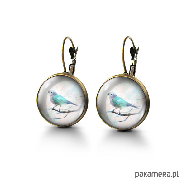 Kolczyki - Turkusowy ptaszek - brąz