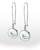 Grafika ukryta w prostych, eterycznych kolczykach, pod osłoną przeźroczystego półokrągłego szkiełka.