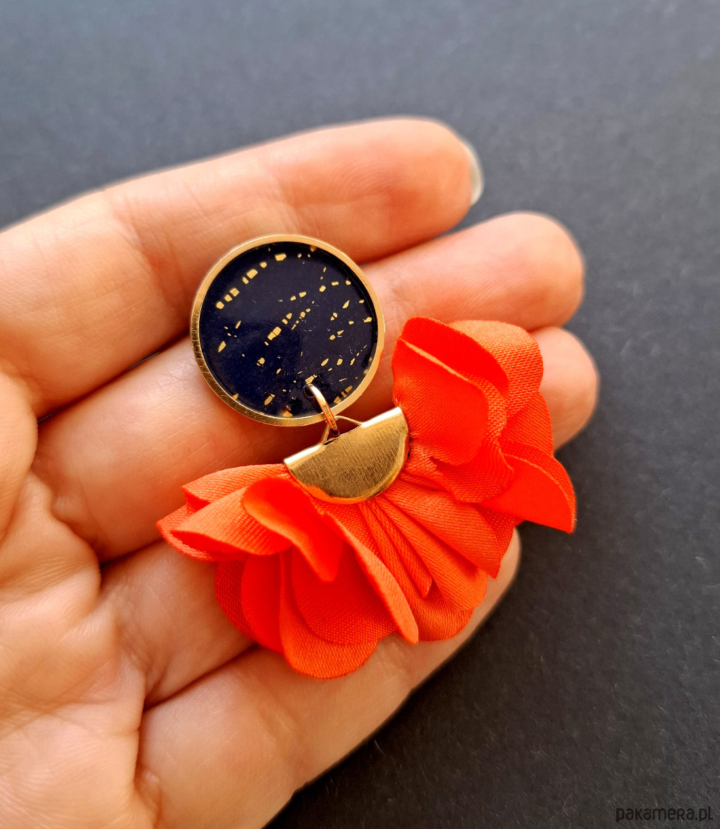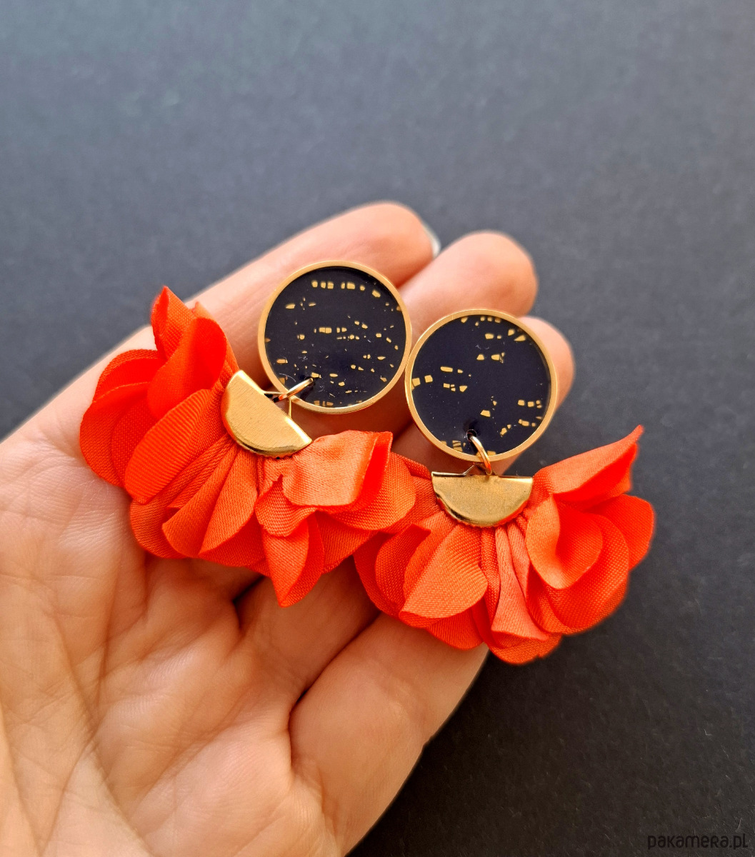 Wymiary kolczyków: długość wraz z zapięciem: 4,7 cm, szerokość max. 4 cm. Wykonane w jedynym egzemplarzu.