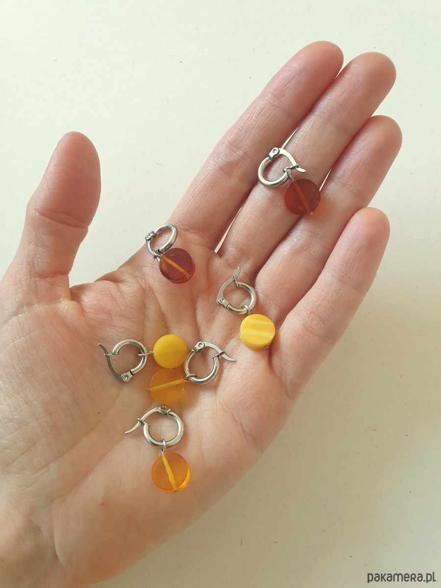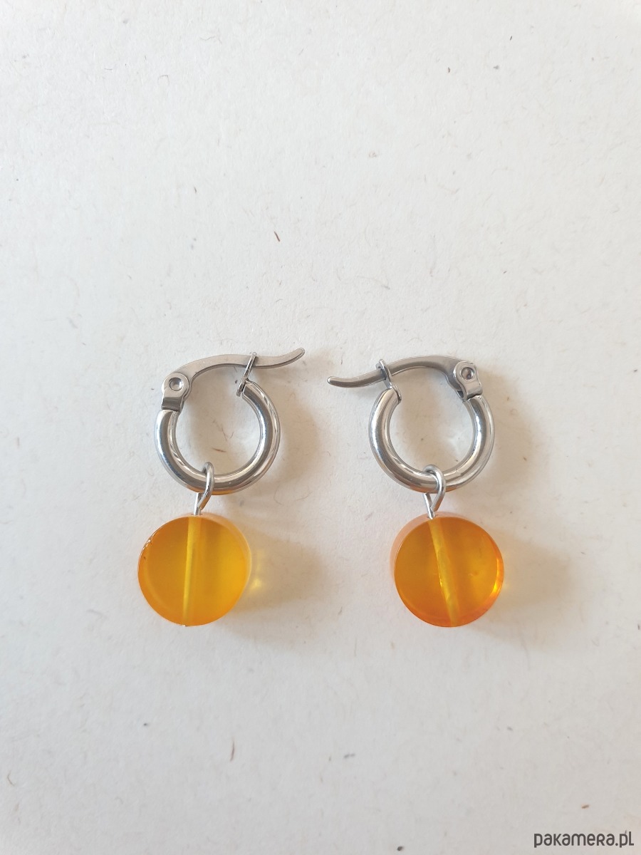Kolczyki UNO, idealne na wieczorne wyjście ale też na co dzień. Wykonane ze stali szlachetnej (hipoalergicznej) z miodowym bursztynem. Można ściągnąć kamyczek i nosić same kółka.