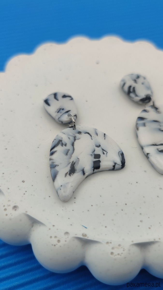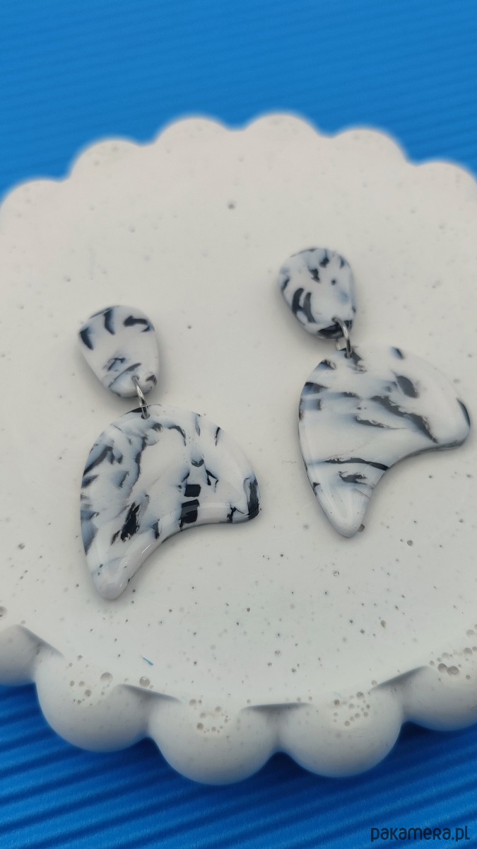 Kolczyki VELA marble mają piękną, abstrakcyjną formę i marmurkowa strukturę.