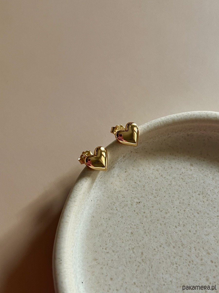 Kolczyki sztyfty w kształcie serduszek, zamykane zapięciem typu baranek. Srebro 925, pozłacane 24K złotem.