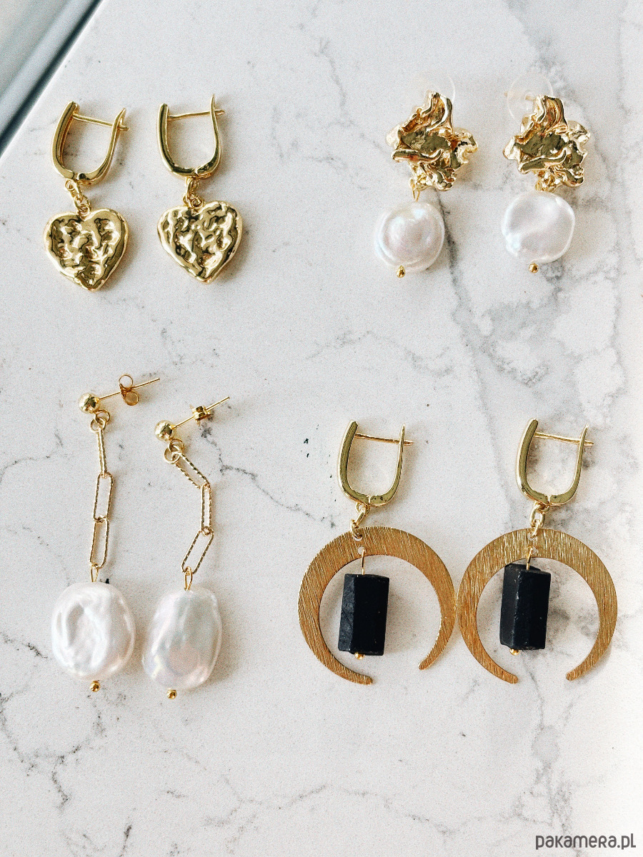 Kolczyki są wykonane ze sztyftu z mosiądzu pozłacanego i perły naturalnej.